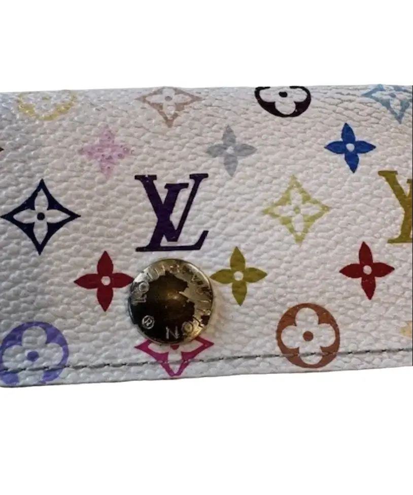 Pre-owned Louis Vuitton Canvas Small Leather Goods Multicolor 6 Key Holder White | Takashi Murakami | Authentic LV Key Case