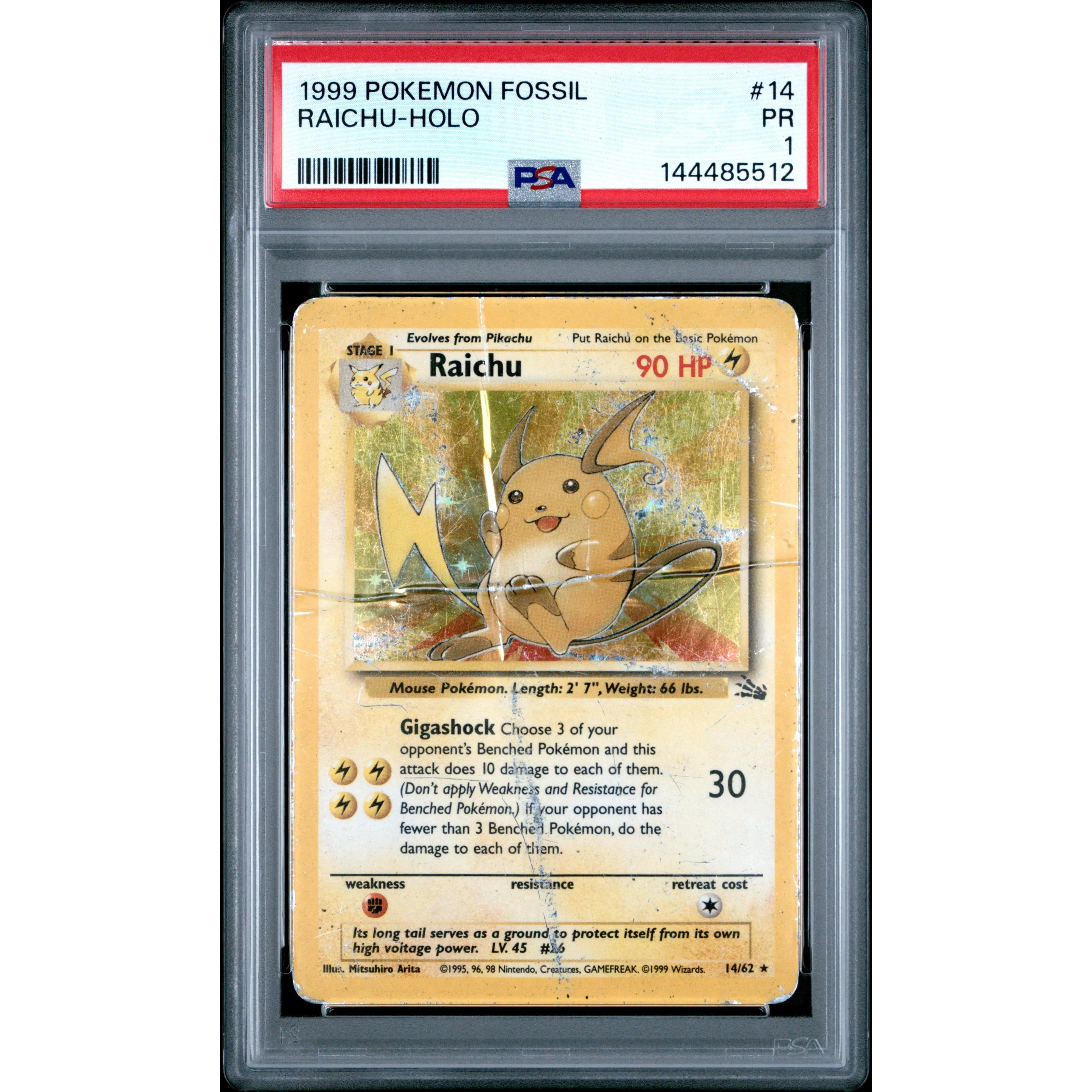 You are purchasing the exact card pictured! 1999 Pokemon Fossil #14 Raichu-Holo . Grade Information:PSA 1 PR. Browse our selection of other Graded and Raw Singles!Due to the nature of the plastic, there may be minor scrathes or scuffing on slabs.