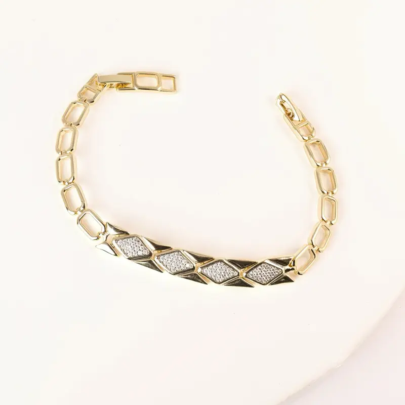 14K Gold Plated Diamond Cut Bracelet with Sparkling Stones 7" + 2cm Extension Unique Geometric Design for Everyday Wear or Gifting Luxury Look