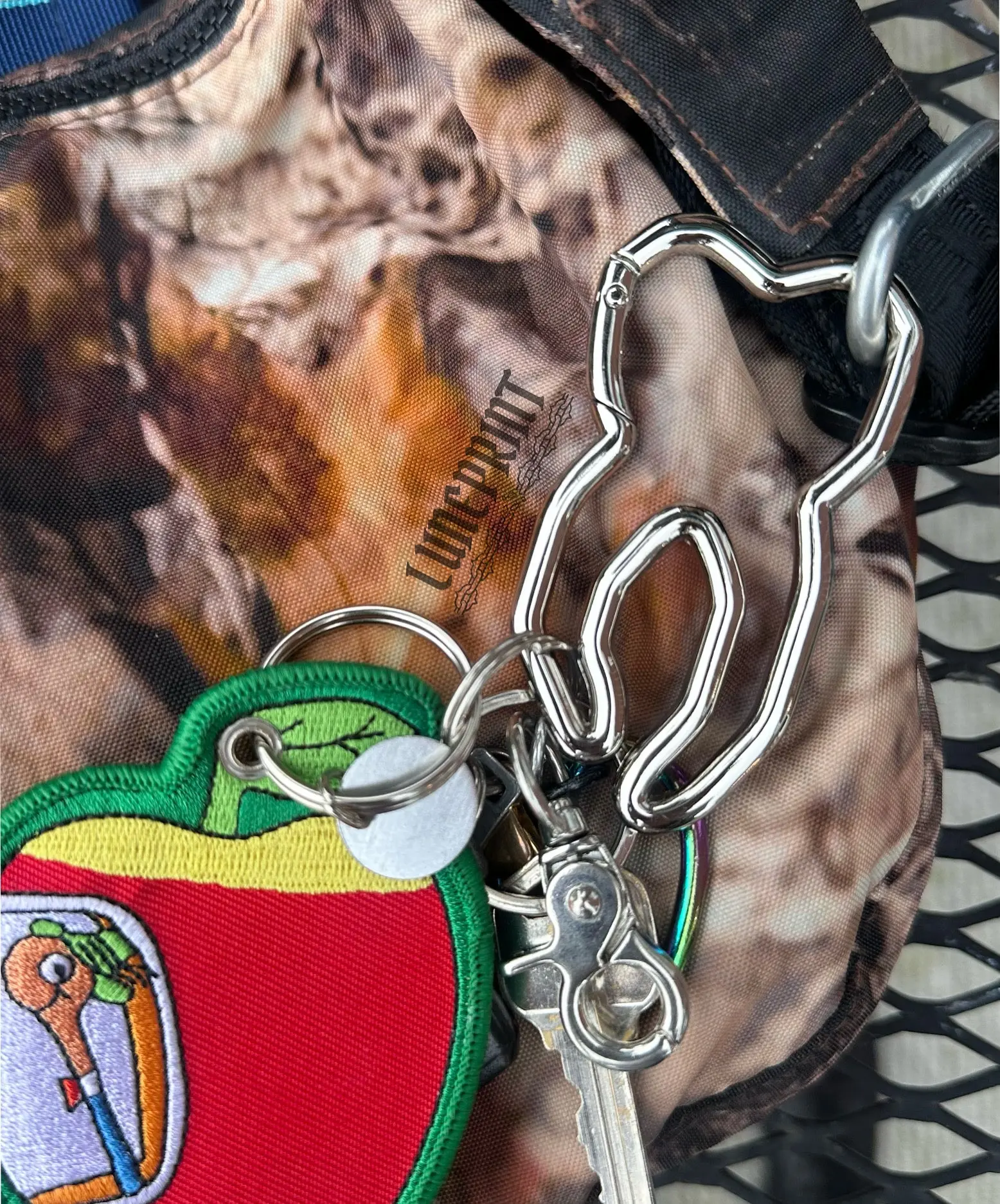 A charming gift from the luneprint tooth fairy! The LunePrint Toothache carabiner, designed by Luna, is perfect for holding keys, trinkets, and more. It's exclusive to LunePrint, featuring a beautifully engraved logo. Material: Zinc Alloy. Dimensions: 1.8 inches x 3.2 inches x 0.20 inches. Ideal for accessory use only, not for climbing or heavy objects. Use safely for longevity.