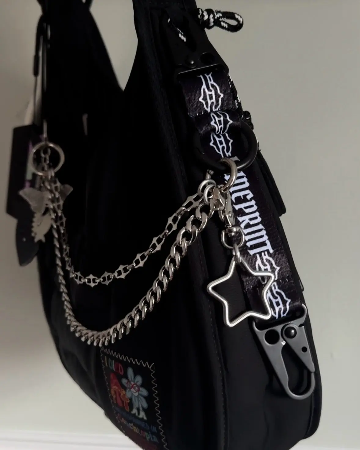 The LunePrint Chain Logo Double Carabiner can be clipped on your keys, pant loop, or bag! It was customized designed by Luna, to bring some edge to your usual boring keys.