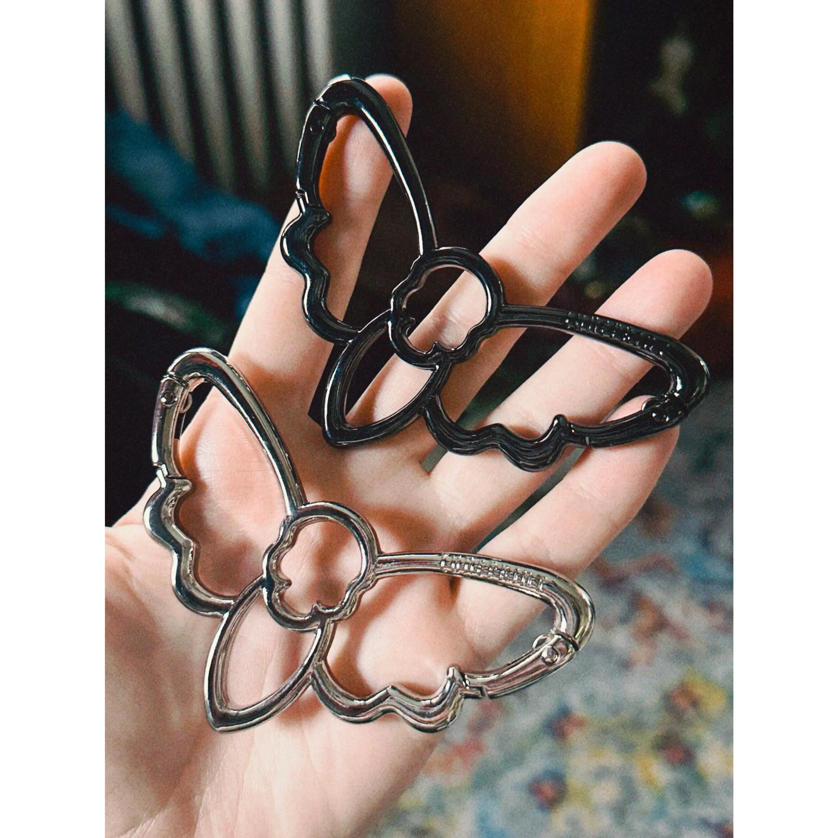 The LunePrint Death Moth carabiner is a unique accessory for bug enthusiasts. Designed by Luna, it holds keys, trinkets, and more. Exclusive to LunePrint, it features a beautifully engraved logo. Material: Zinc Alloy. Dimensions: 1.8 x 3.2 x 0.20 inches. Ideal for accessory use only, not for climbing or heavy objects. Use safely for longevity.