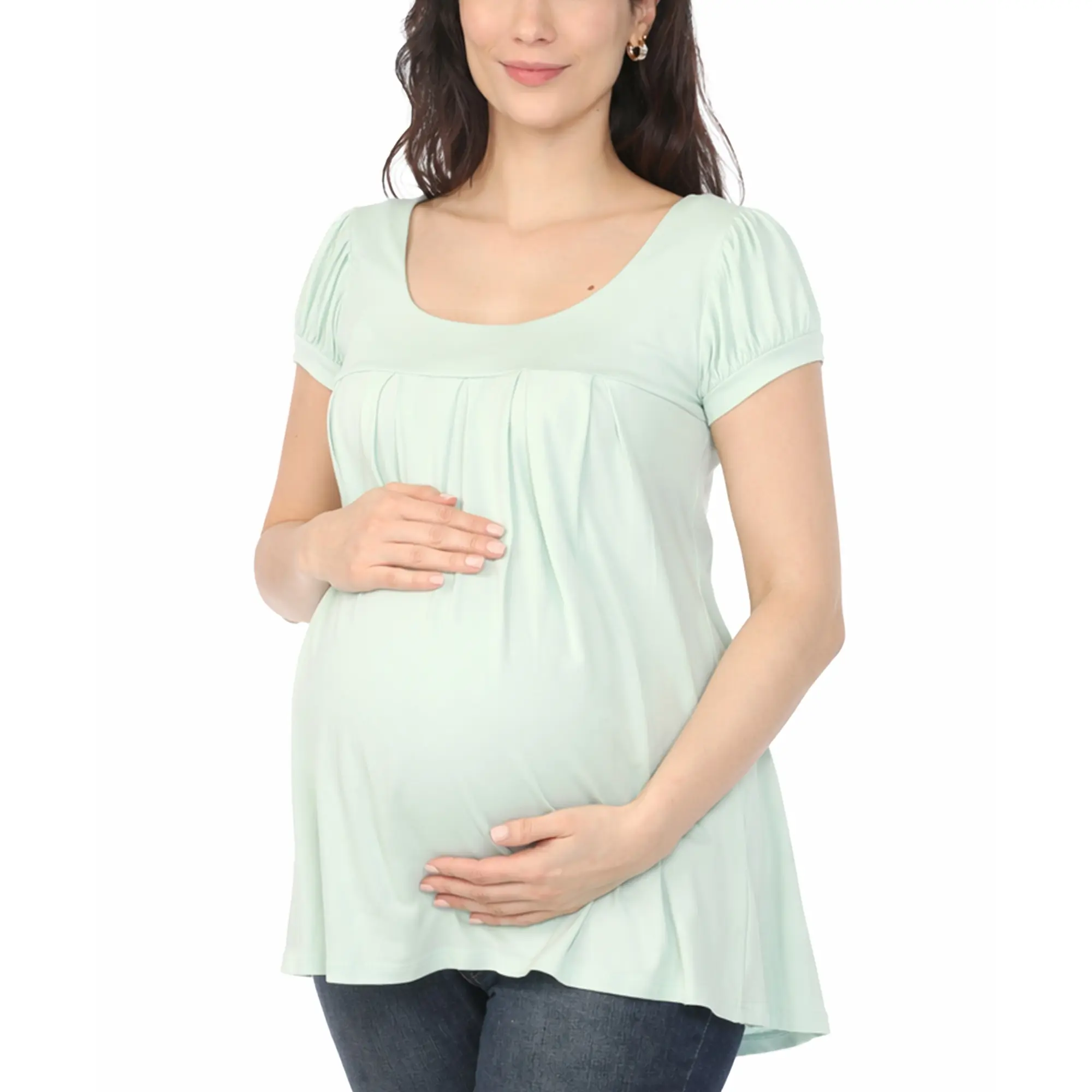 White Mark Women’s Maternity Short Sleeve Empire Waist Tunic Top