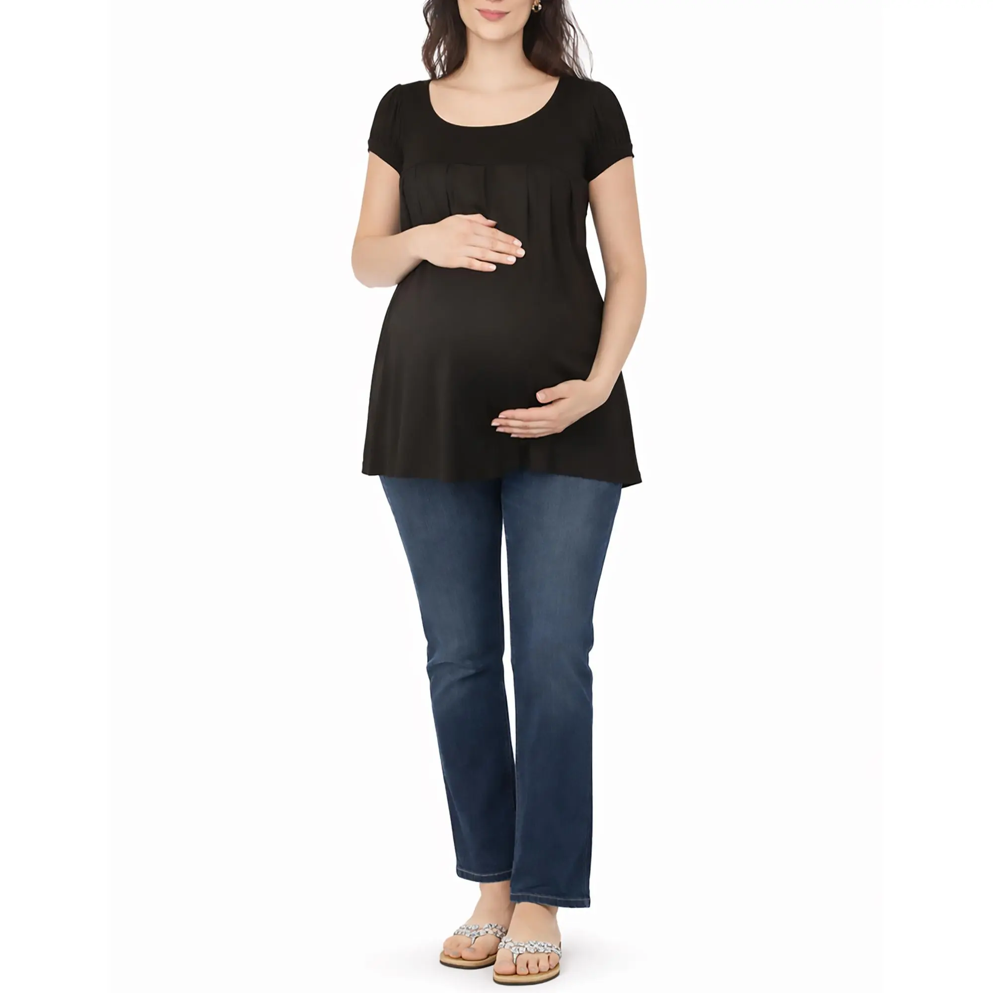 White Mark Women’s Maternity Short Sleeve Empire Waist Tunic Top is a stylish and comfortable everyday blouse designed for versatile wear. Featuring soft pleated detailing at the front and flattering cap sleeves, this women's top offers a relaxed yet polished look. The lightweight stretch fabric provides breathable comfort and easy movement throughout the day. Perfect for work, casual outings, travel, or weekend wear, this women's pleated blouse pairs effortlessly with jeans, skirts, or dress pants for a versatile wardrobe essential. Made from 92% Polyester, 8% Spandex.