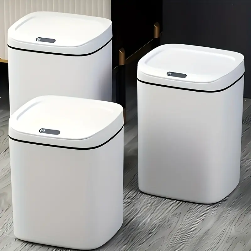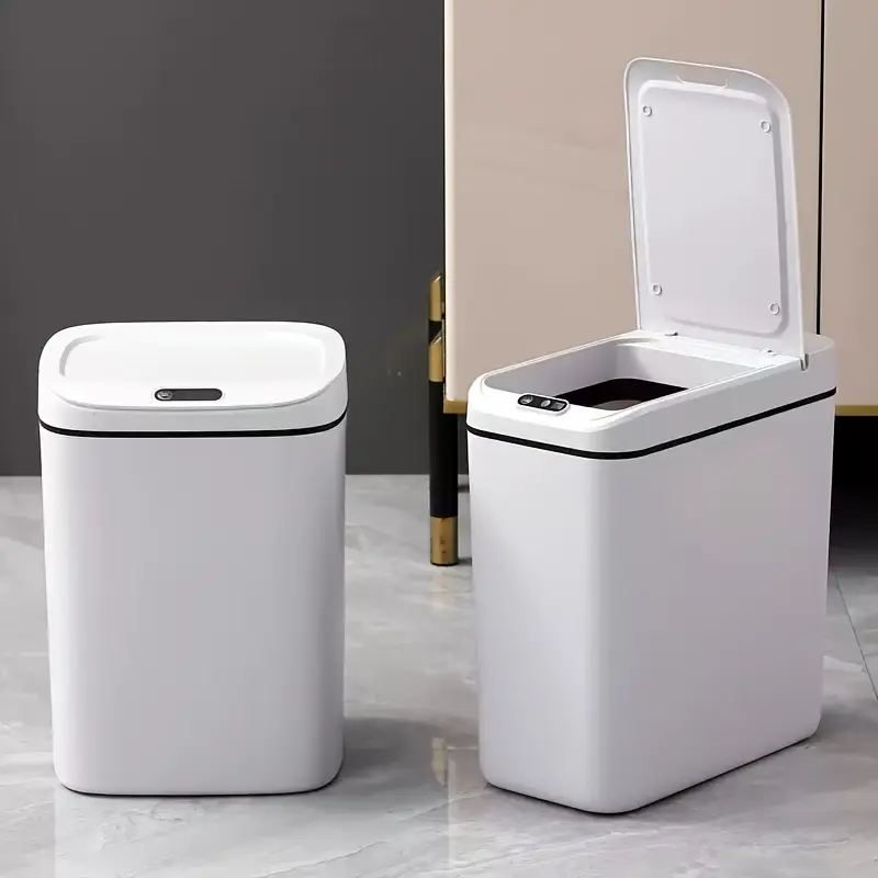 Motion-Activated Smart Trash Bin for Bathrooms, Featuring a Lid And Touchless Operation. Its Minimalist Design Makes It Ideal for Home, Kitchen, Office, Bathroom, And Outdoor Settings, Providing an Effective Solution for