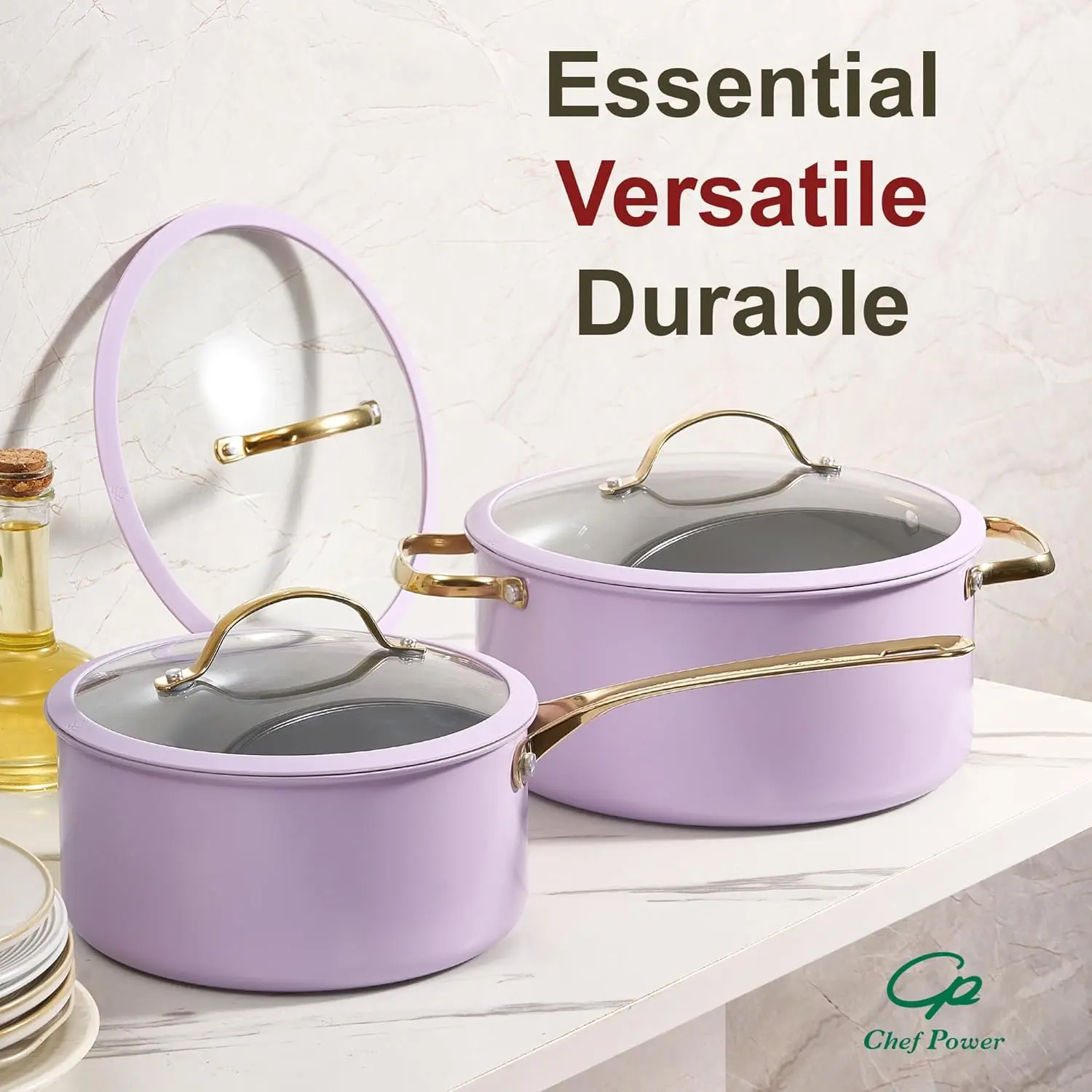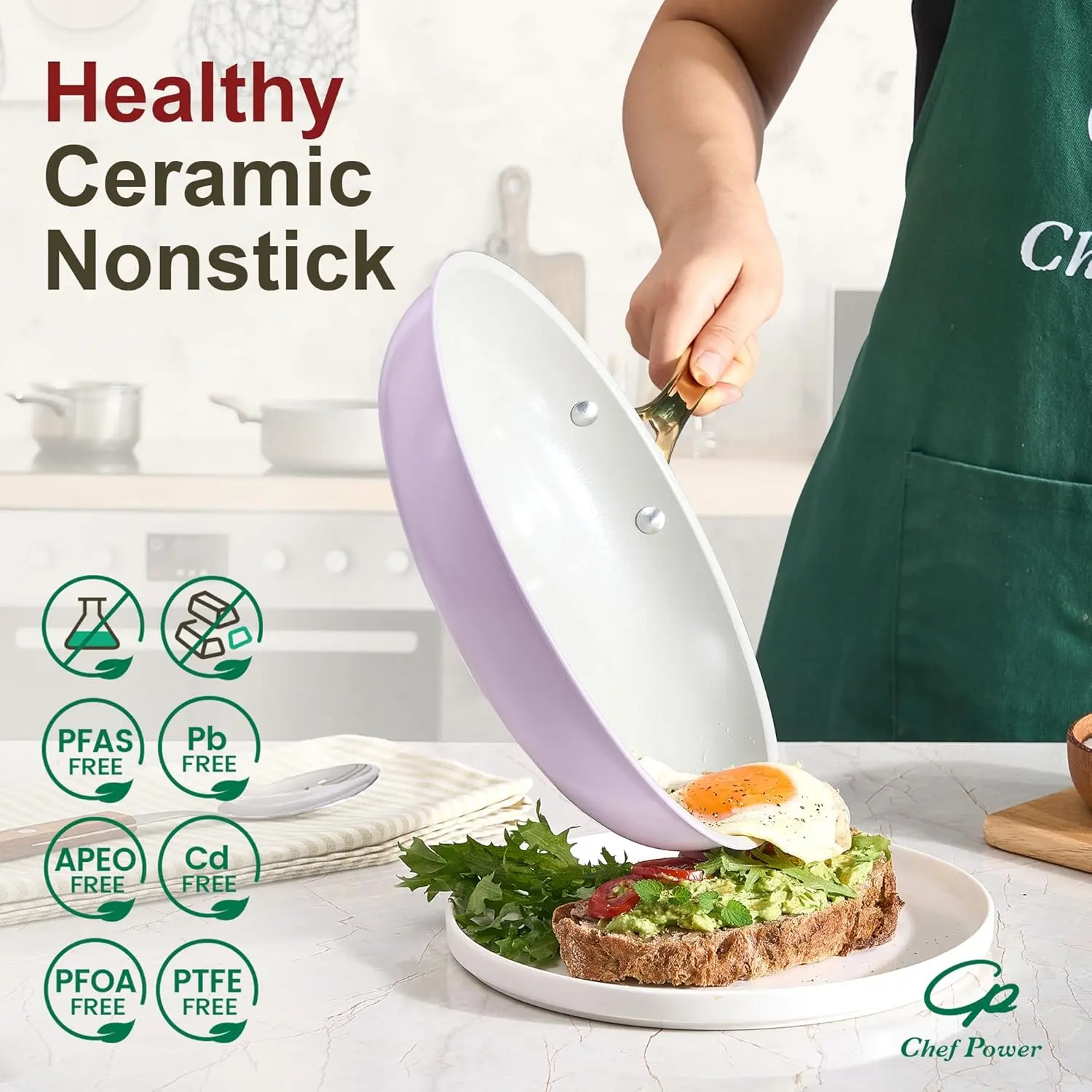 ·Healthy Ceramic Nonstick: Chef Power's ceramic cookware set features a natural stone-derived coating, free from Teflon, PFAS, PTFE, PFOA, lead, and cadmium—delivering safer, healthier cooking for your kitchen.