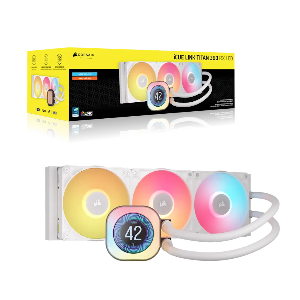 iCUE LINK TITAN 360 RX LCD Liquid CPU Cooler - White