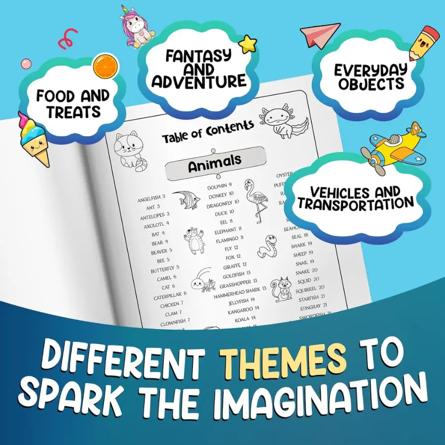 This fun and engaging drawing book helps kids explore their imagination while learning how to draw step by step. With easy instructions and a wide variety of subjects, young artists can create everything from cute animals and tasty foods to cool vehicles and magical scenes.