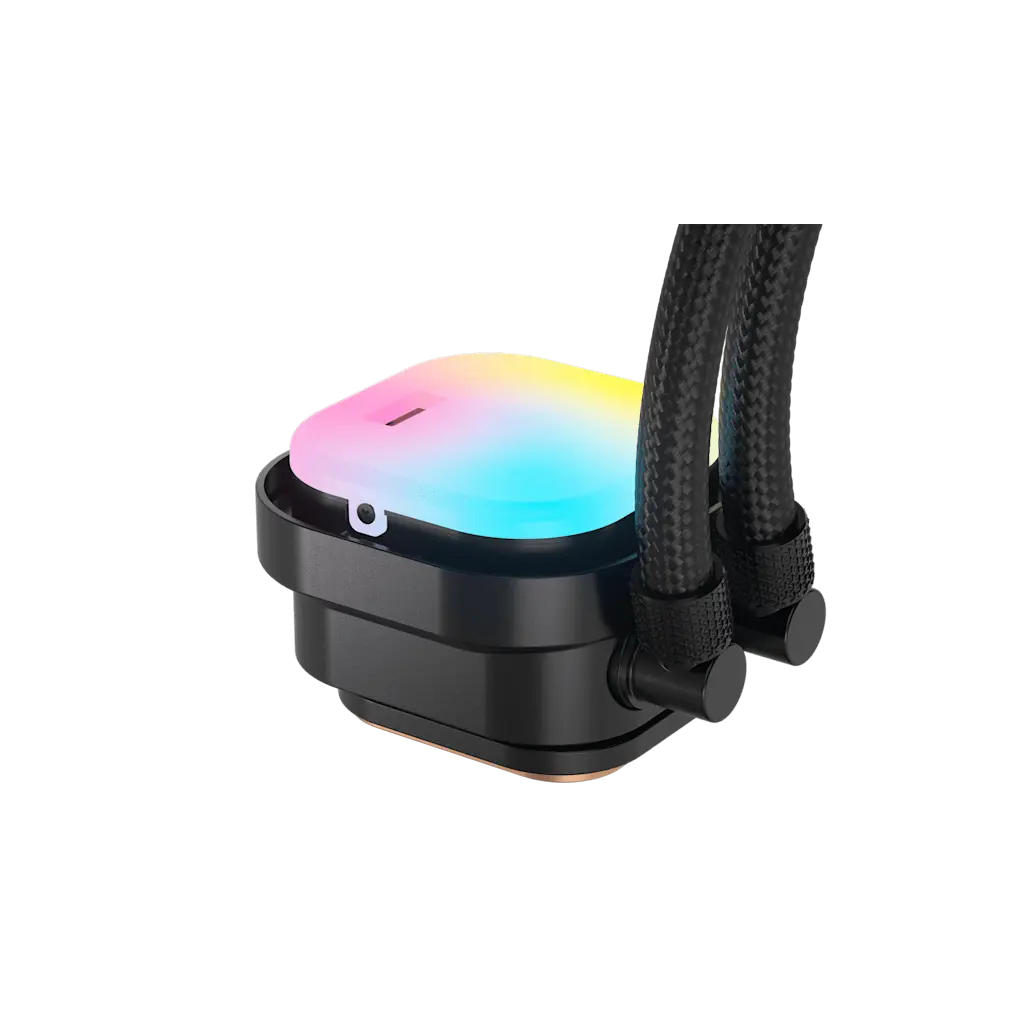 ·20 RGB LEDs on the pump plus eight per fan create dynamic lighting