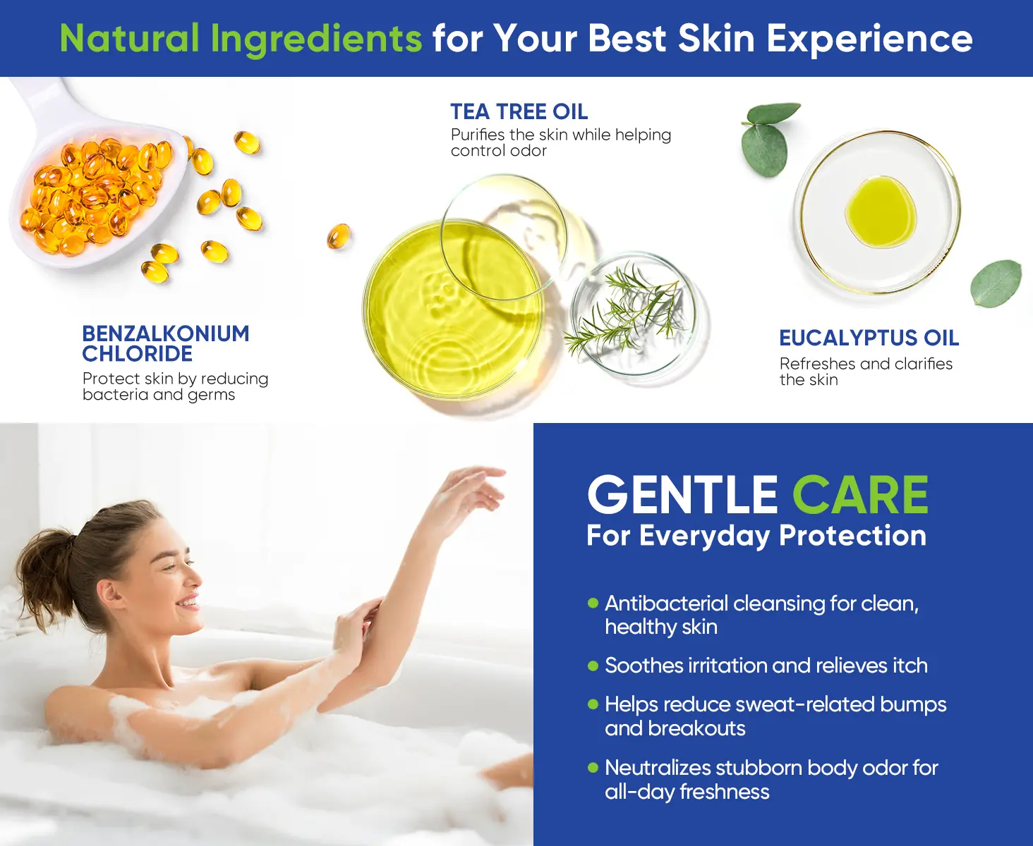 | Ingredients | Benzalkonium Chloride 0.13%,Water,Sodium C14-16 Olefin Sulfonate,Cocamido-propyl Betaine,Glycerin,Coco-Glucoside,PEG-40 Hydrogenated Castor Oil,Acrylates Copolymer,Cocamide Methyl MEA,Melaleuca Alternifolia (Tea Tree) Leaf Oil,Aloe Barbadensis Leaf Water,Sodium Chloride,Phenoxyethanol,Eucalyptus Globulus Leaf Oil,Sodium Cocoyl Isethionate,Mentholum,Decyl Glucoside,Chlorphenesin,Maltooligosyl Glucoside,Allantoin,Niacinamide,Sodium Hydroxide,Hydrogenated Starch Hydrolysate,Coconut Acid,Disodium EDTA,Butylene Glycol,Citric Acid,Phospholipids,Hydroxyphenyl Propamidobenzoic Acid,Caramel,Simmondsia Chinensis (Jojoba) Seed Oil,Tocopheryl Acetate,Avena Sativa (Oat) Kernel Flour,Cocos Nucifera (Coconut) Oil,Olea Europaea (Olive) Fruit Oil,Hydroxyethyl Urea,Glycereth-26,Honey Extract,Hyaluronic Acid,Sodium Hyaluronate Crosspolymer |