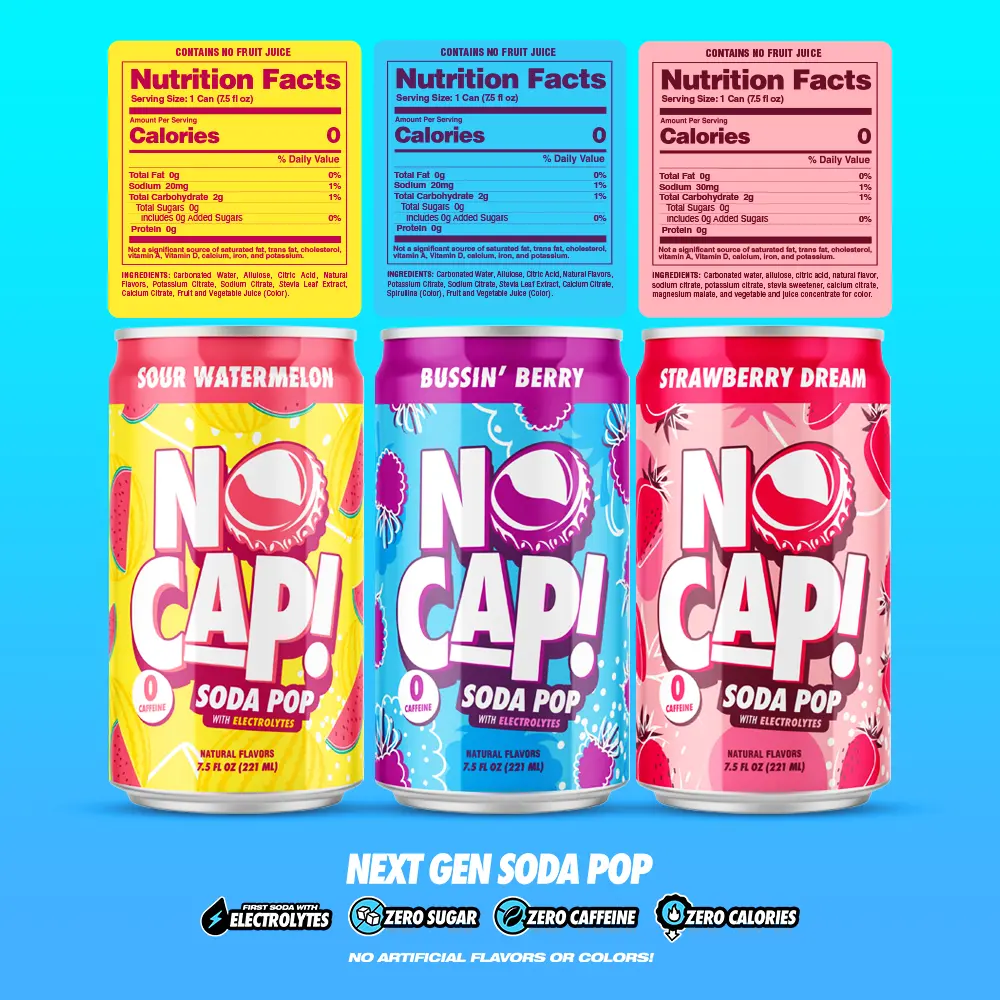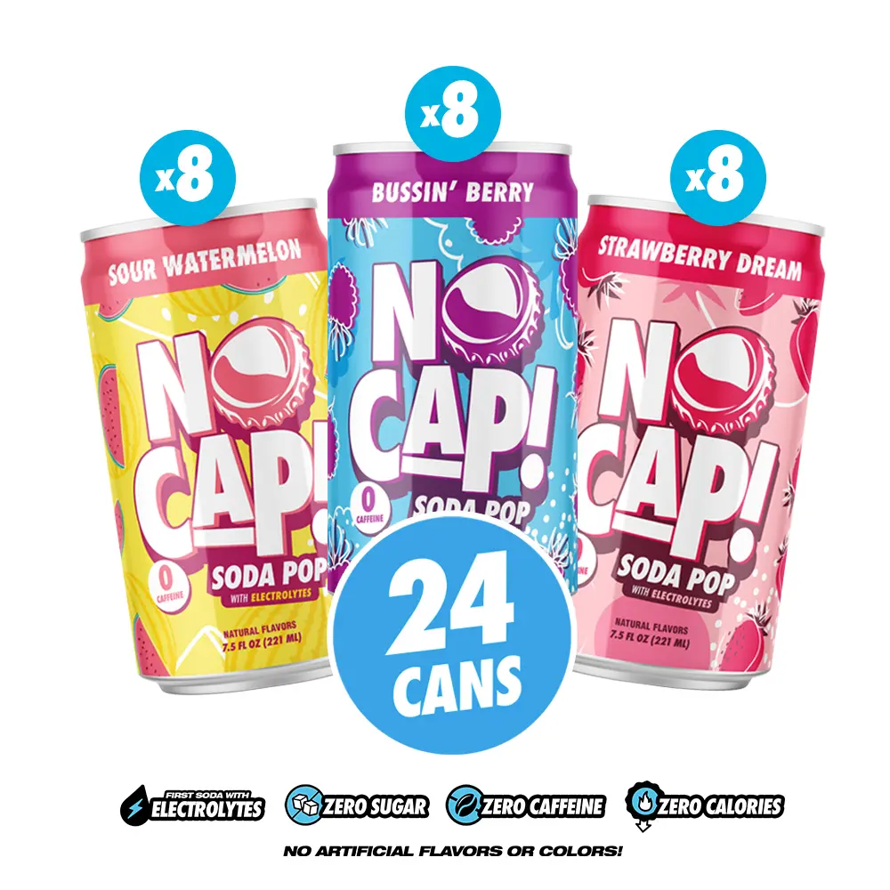 ZERO SUGAR, ZERO CALORIES, ZERO CAFFEINE - Finally, a soda that delivers bold, crave-worthy flavor without the guilt. NO CAP! Soda Pop gives you everything you love about classic soft drinks with none of the stuff you don't, no sugar crashes, no jitters, just pure refreshment you can enjoy anytime
