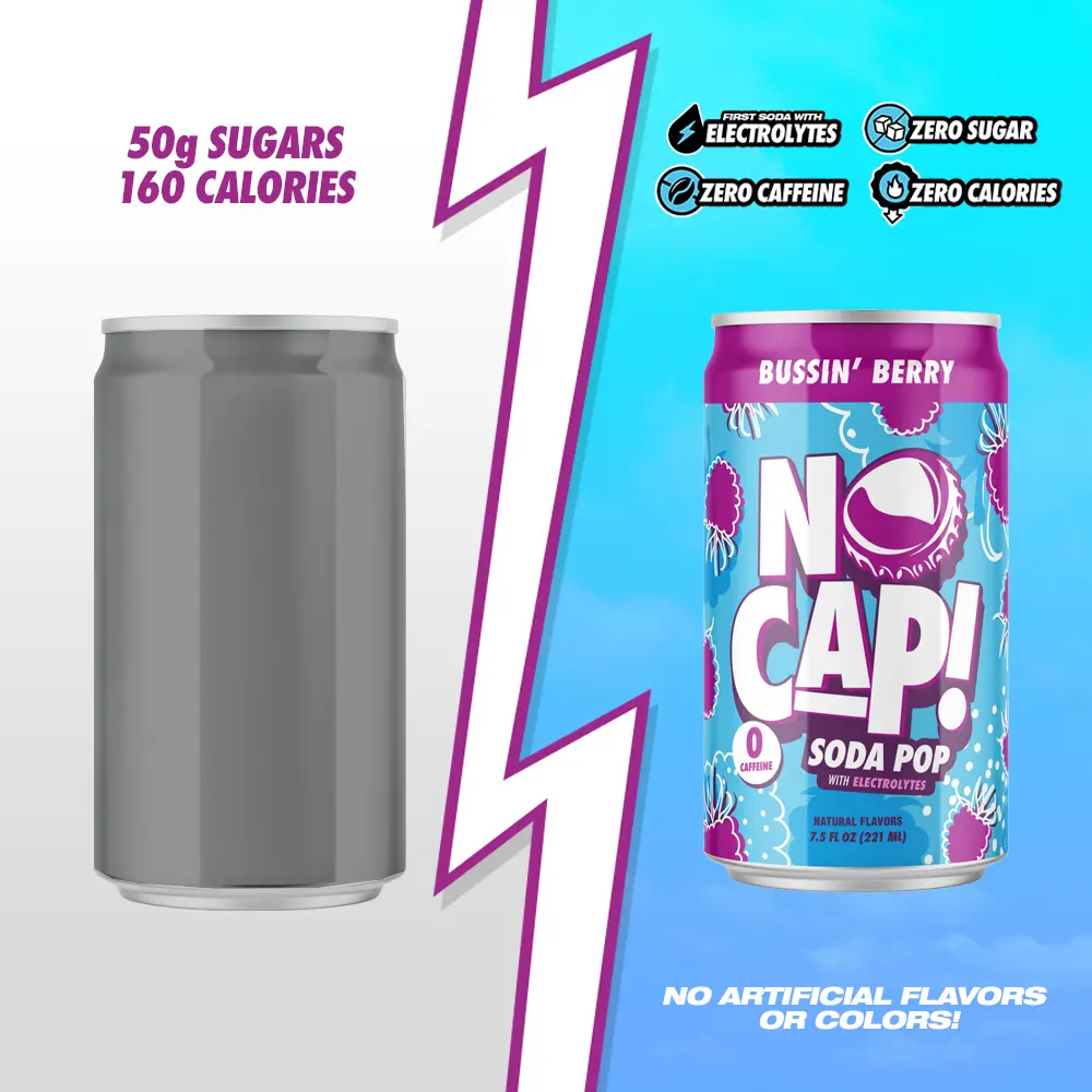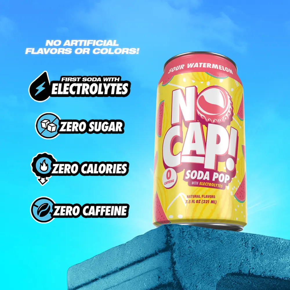 ELECTROLYTES FOR AN ACTIVE LIFESTYLE - Unlike other sodas, NO CAP! is formulated with electrolytes to support hydration and complement your on-the-go lifestyle. Whether you're hitting the skatepark, the beach, or just chilling with friends, this functional soda keeps up with you