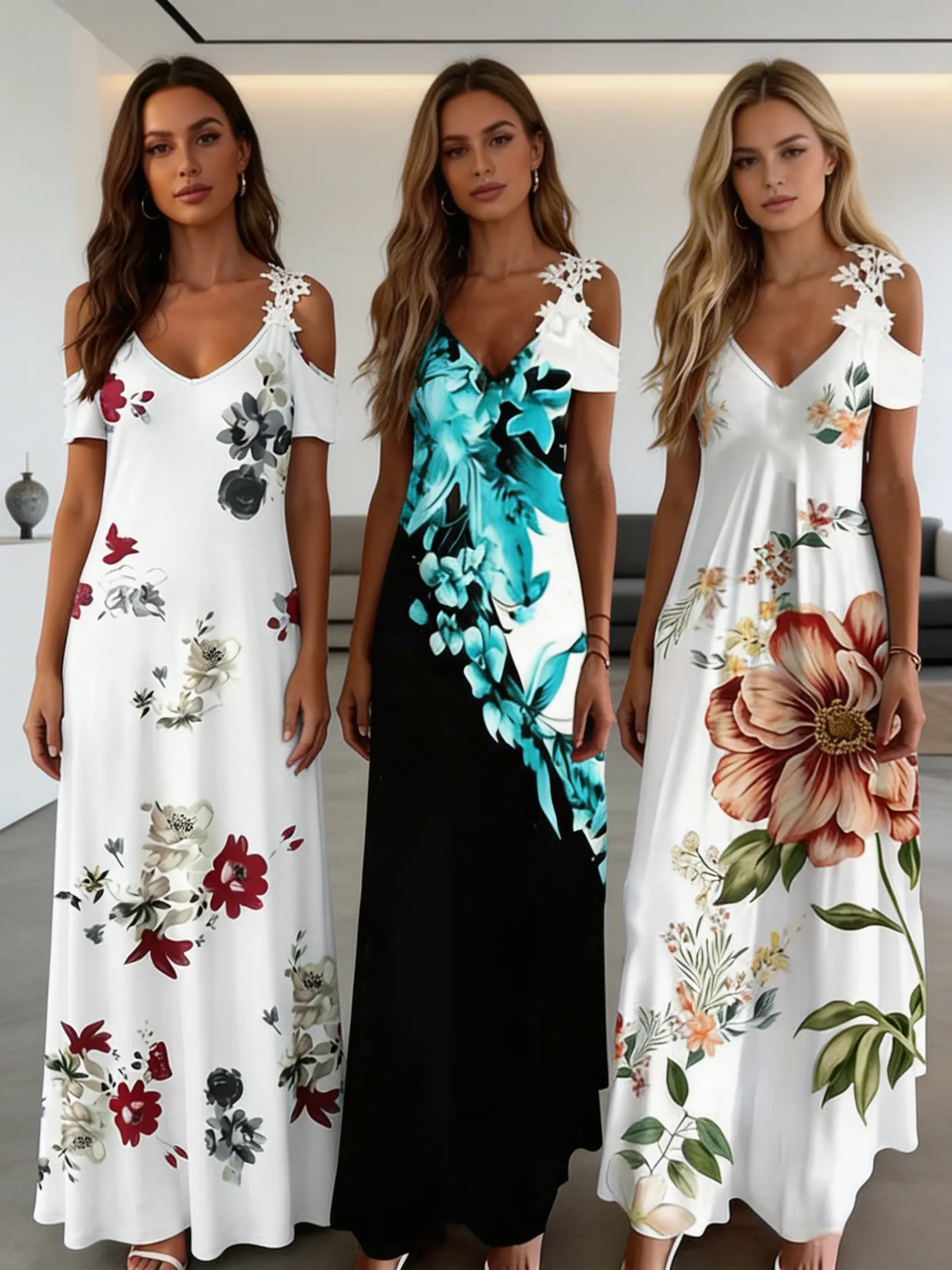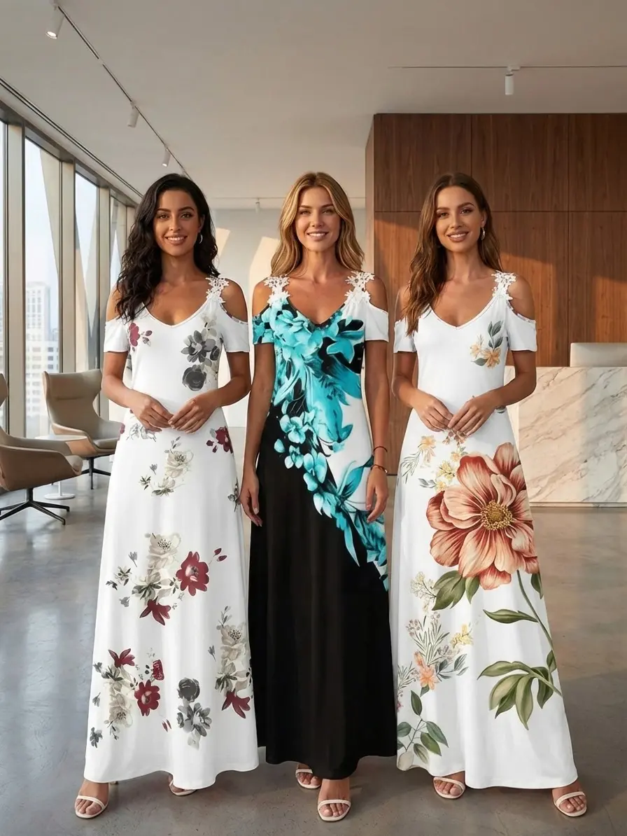 Women'S Printed White Lace Sleeveless Suspender Dress Summer Fashion Casual Long Dress NONE