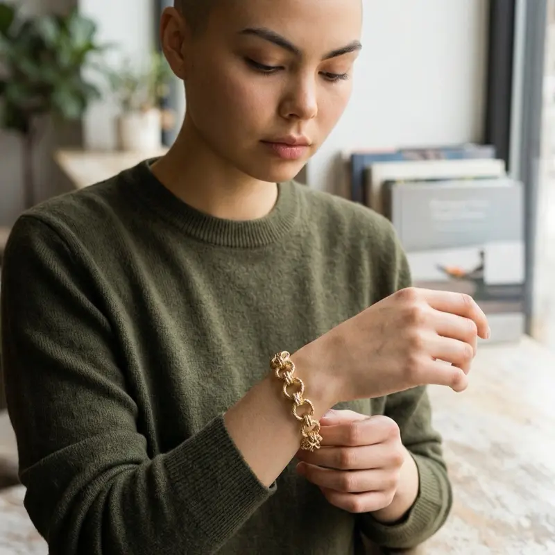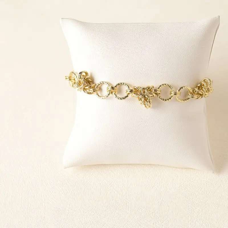 This rope link bracelet features a unique circle design with a luxury gold finish that elevates any look.