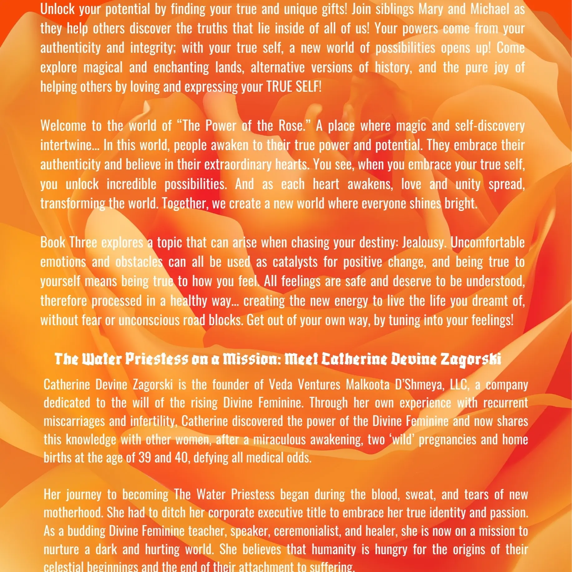 ·Power of the Rose, Book Three explores a topic that can arise when chasing your destiny: Jealousy. Uncomfortable emotions and obstacles can all be used as catalysts for positive change, and being true to yourself means being true to how you feel. All feelings are safe and deserve to be understood, therefore processed in a healthy way... creating the new energy to live the life you dreamt of, without fear or unconscious road blocks. Get out of your own way, by tuning into your feelings!