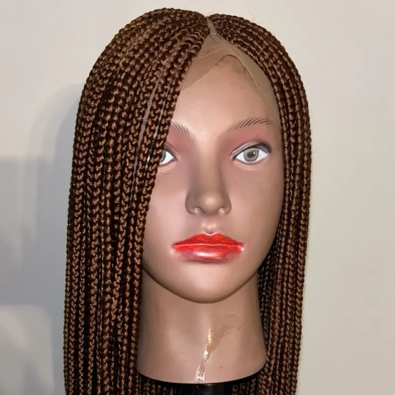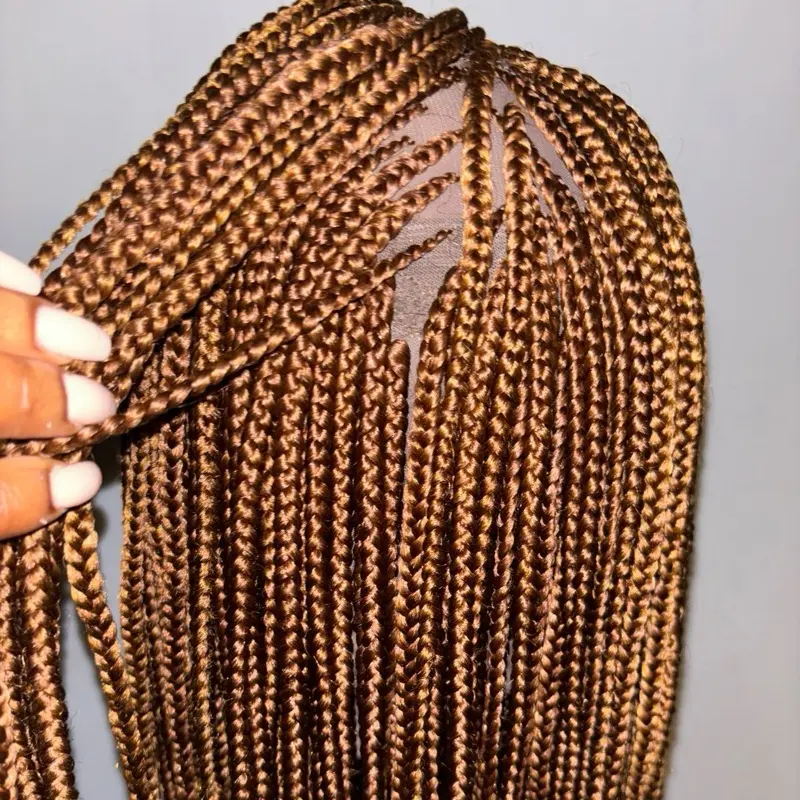 Handmade Brown Micro Box Braided Wig Lace Front Glueless Knotless Look Ready to Wear 37" Adjustable Cap Natural Hairline