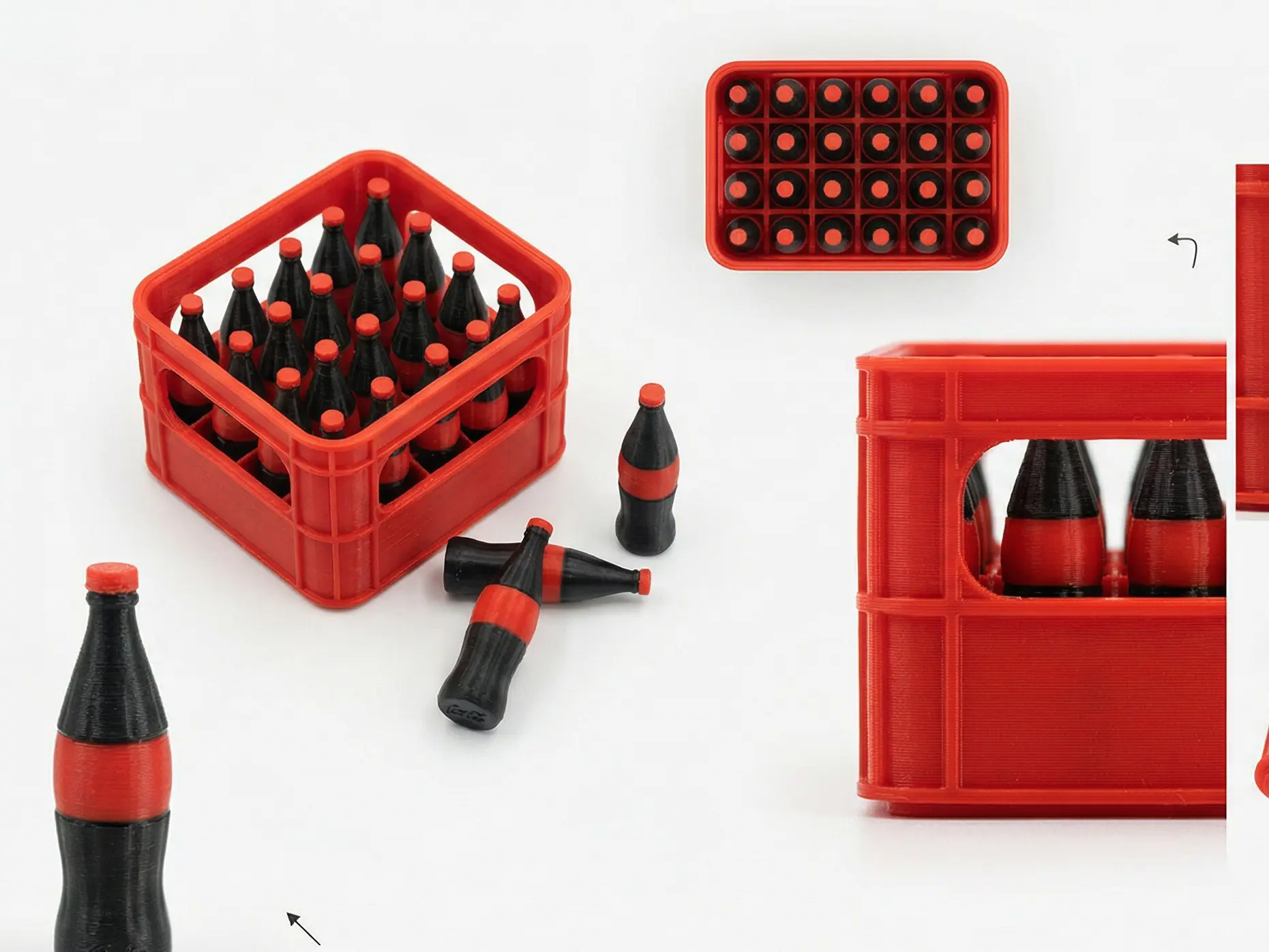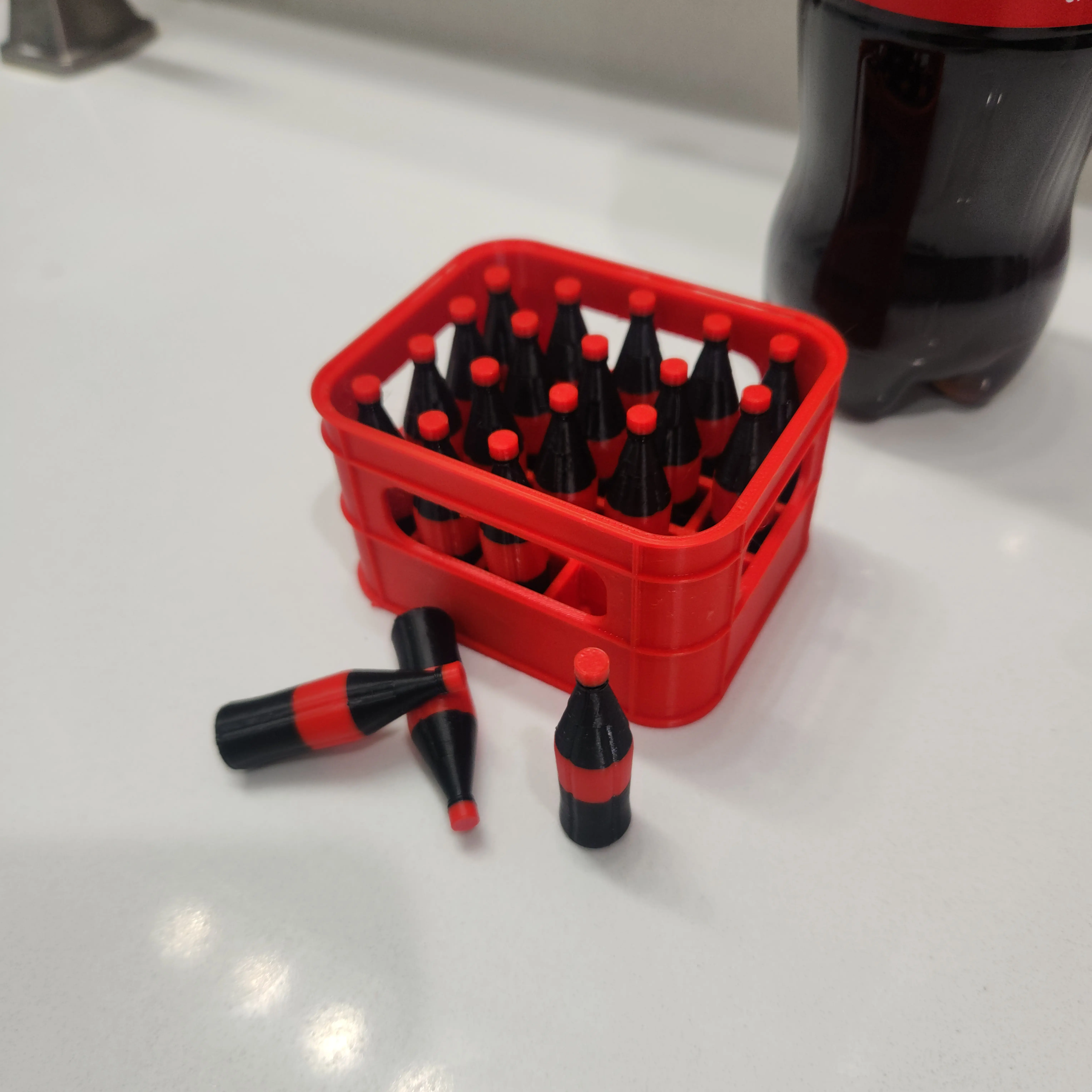 The set is a scaled-down version of a cola crate and bottles. It's a fun and creative way to showcase your love for cola. The crate and bottles are detailed, offering a realistic look. No additional features are included. Enjoy the nostalgia and charm of this miniature set.