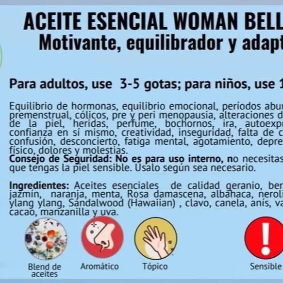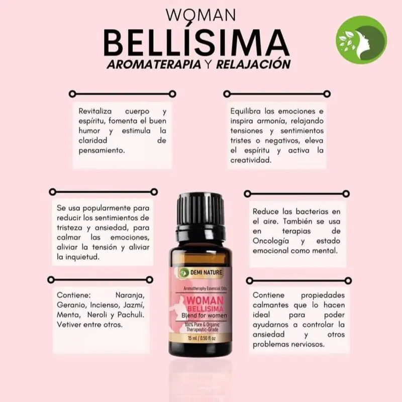 Woman Bellísima es una sinergia compuesta principalmente por aceites de: