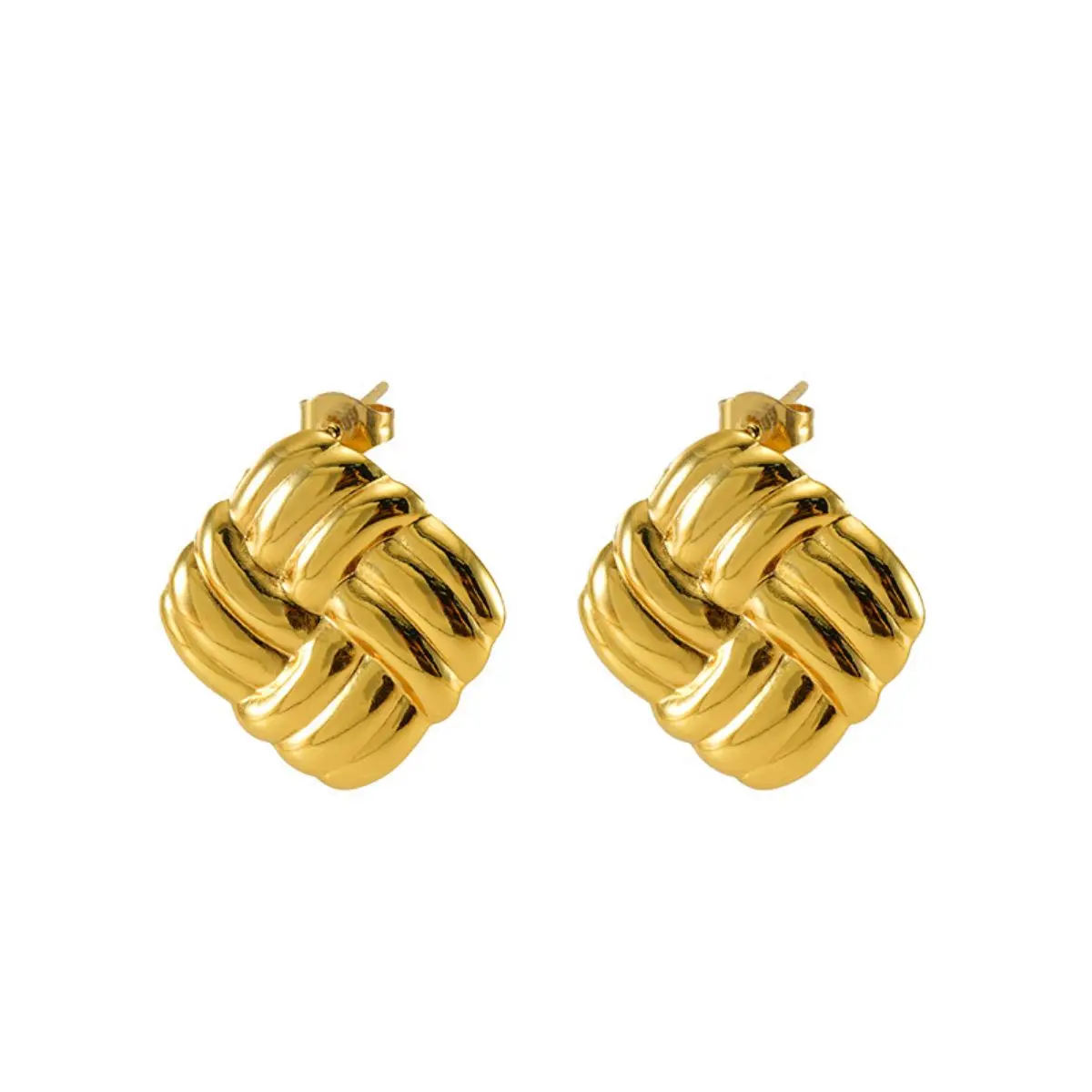VEVE Square Textured Earrings 18K Gold Titanium Steel Niche Design Twist Earrings For Women