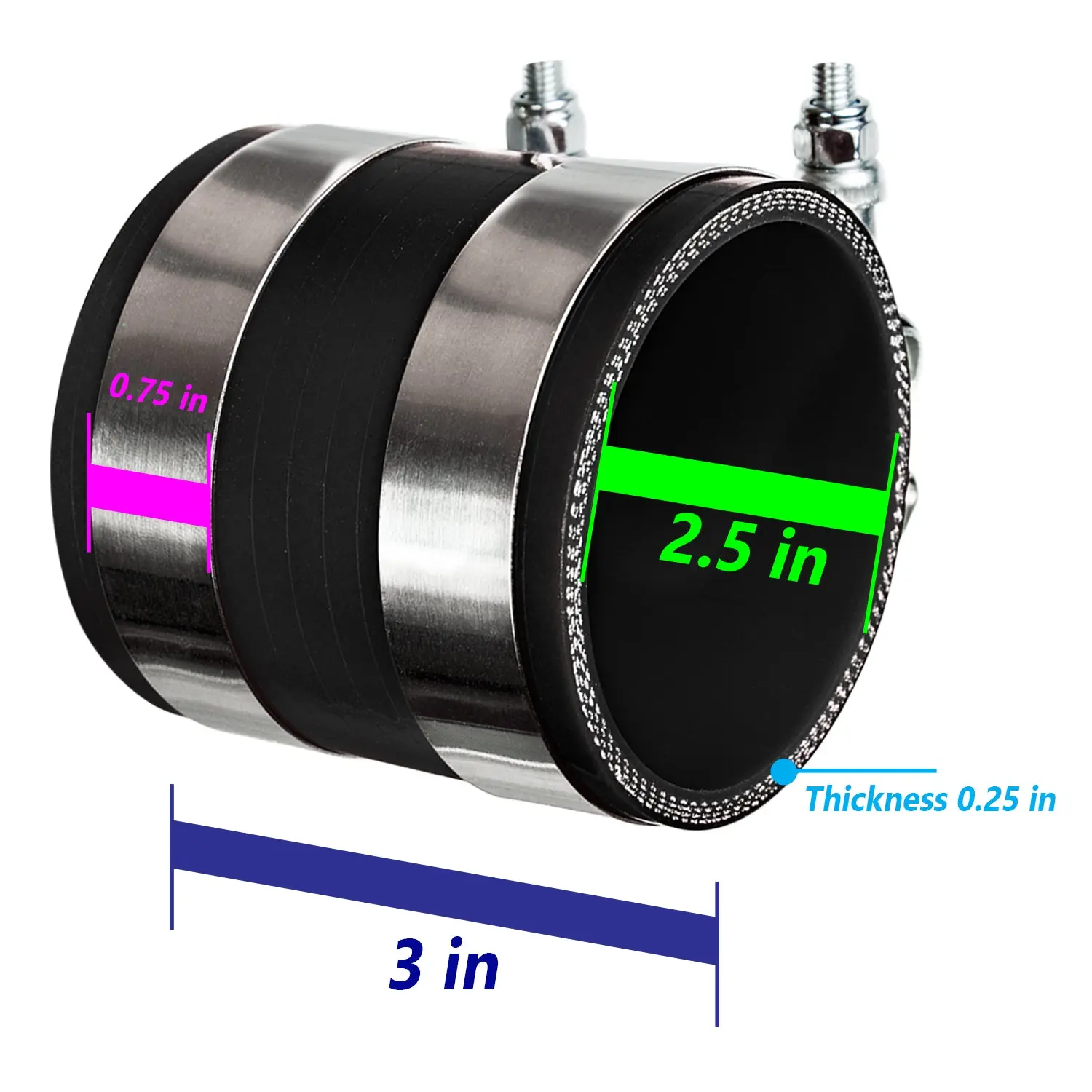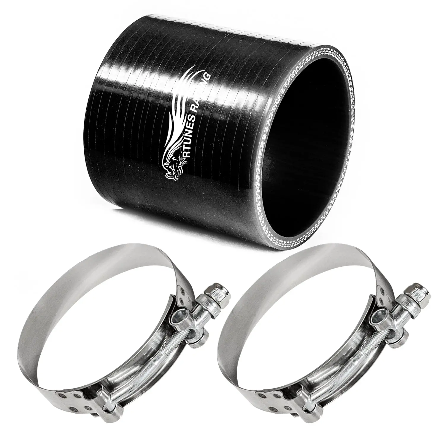 2.5" inch (63.5mm) Silicone Coupler Hose with T-Bolt Clamps | Rtunes Racing | BLACK SH-SCH63CK-TC