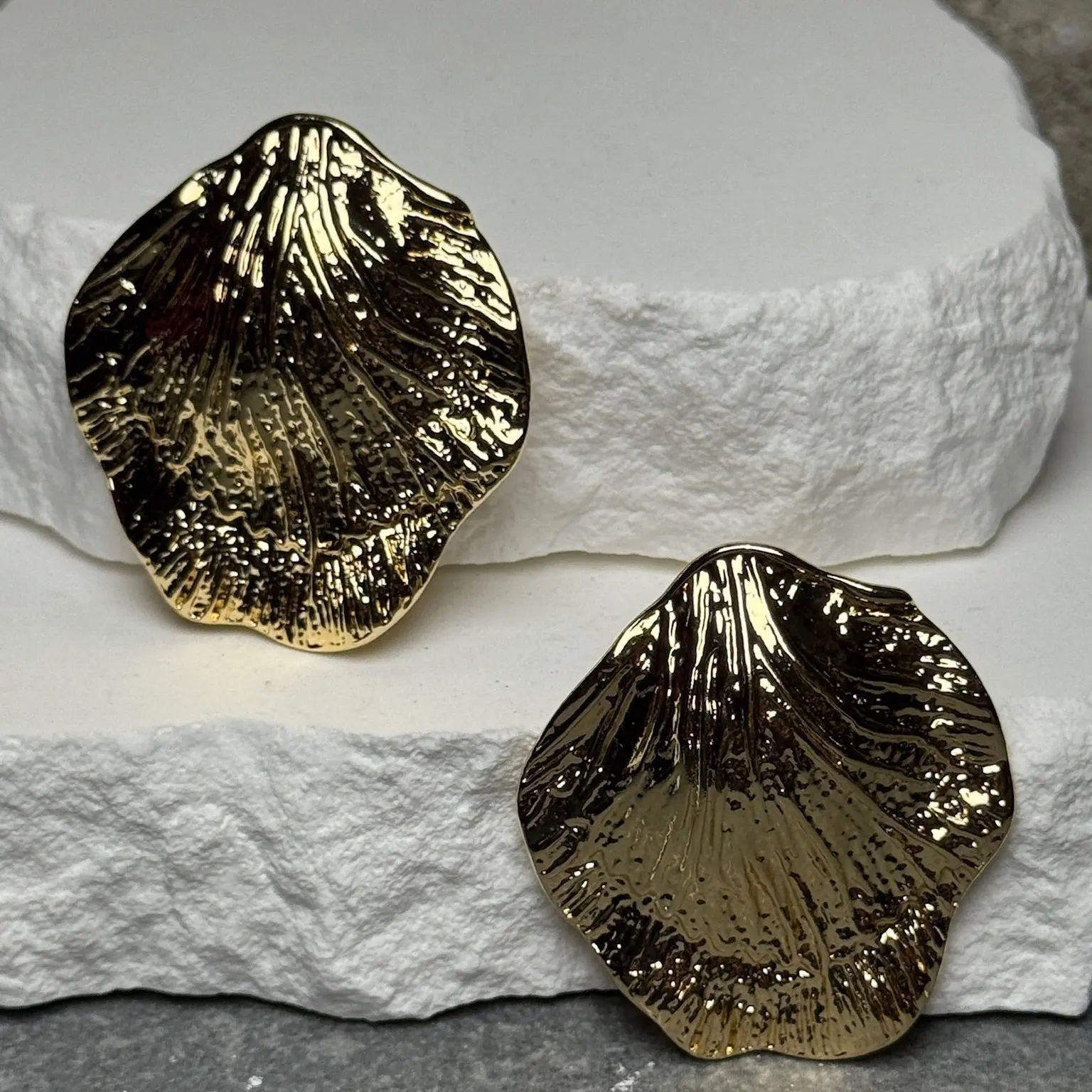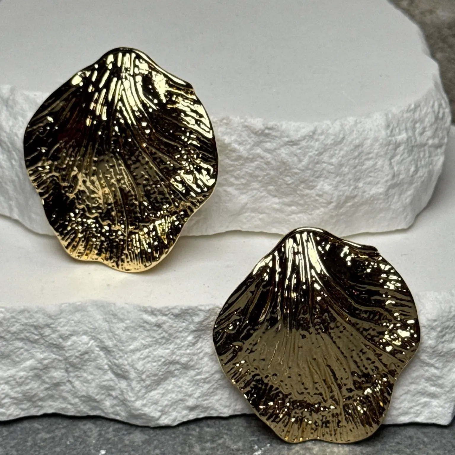 Matte gold-tone finish with a sculpted, organic petal/shell shape