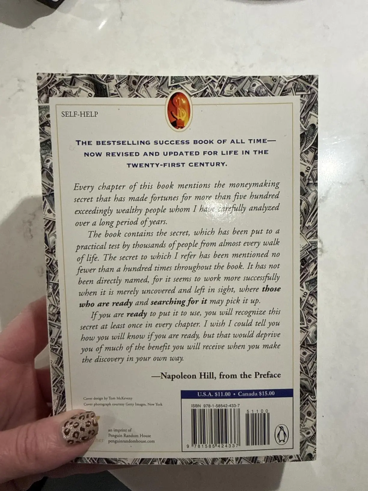 Written by Napoleon Hill, focusing on the principles of success, wealth, and personal achievement.