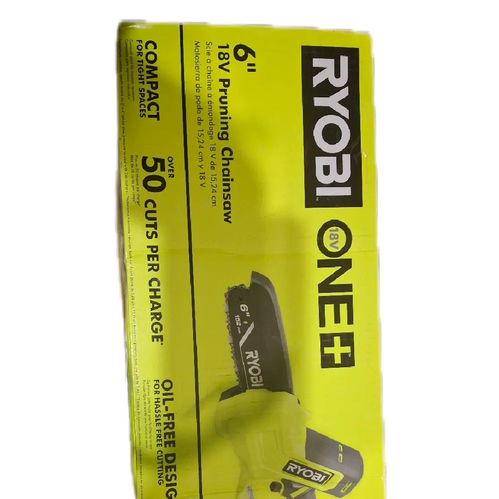 The Ryobi 18V One Plus 6 Inch Pruning Chainsaw is a compact design perfect for gardening tasks. It offers 50 cuts per charge, ensuring efficiency without the need for oil. This tool is ideal for those seeking a lightweight, easy-to-use pruning solution. Its compact size makes it convenient for storage and transport.