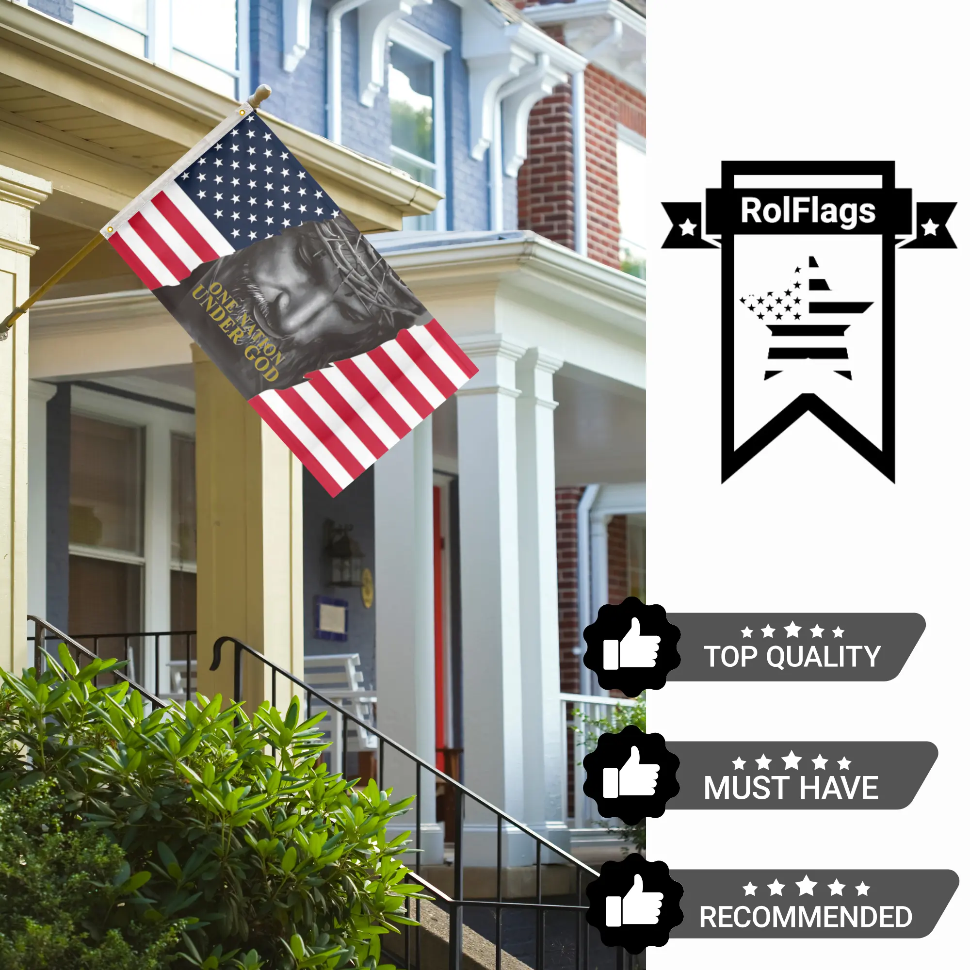 One Nation Under God Jesus USA 3'X5' Flag 100D Polyester (90cm x 150cm) Christian Flag (C13) RolFlags