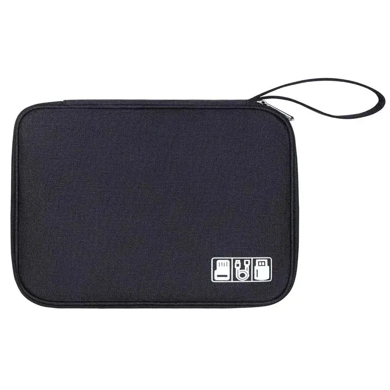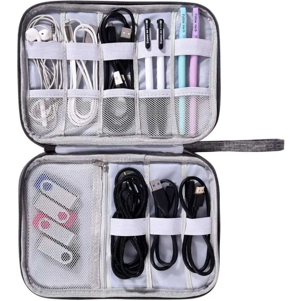The cord bag has enough roomy to hold various items like cables, flash disk, SSD, Cords, Memory Cards,USB drive, Power, Charger, passport, Adapters ,Pens, Headphone, airpods and etc.