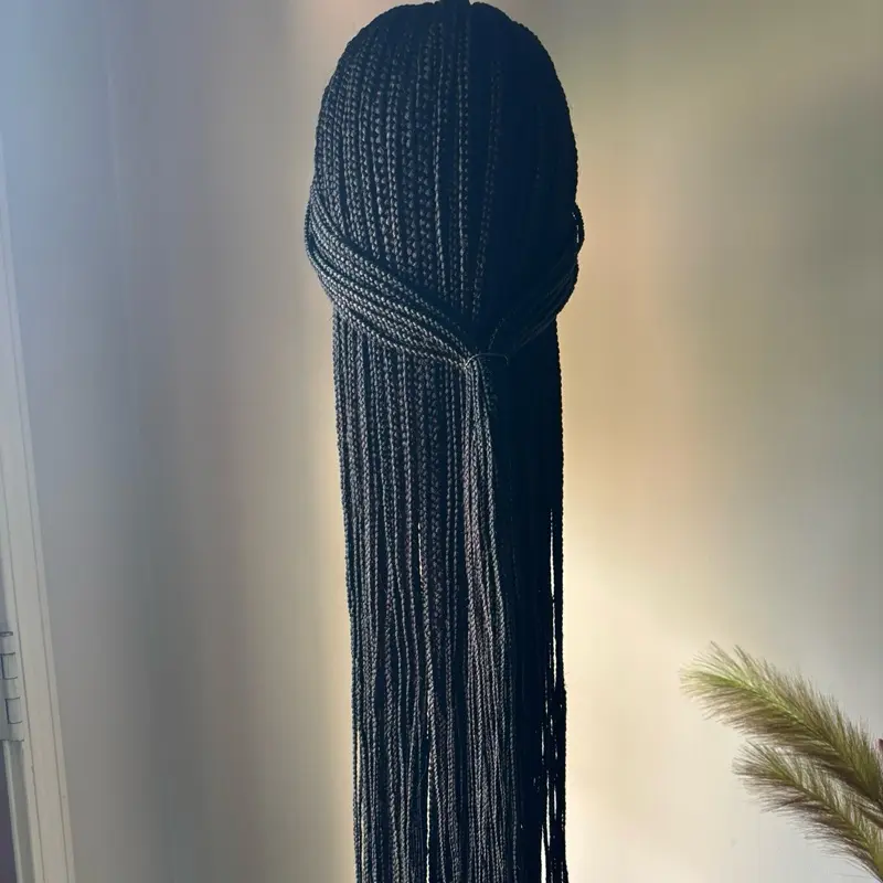 This handcrafted knotless box braid wig gives you all the look with none of the wait. Each braid is individually hand-braided onto a breathable lace cap so the hairline looks completely natural — nobody will know it's a wig unless YOU tell them!