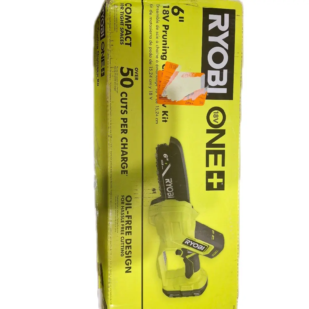 RYOBI 18V One+ 6" Pruning Chainsaw Kit with Battery and Charger - Oil-Free Design for Hassle-Free Cutting