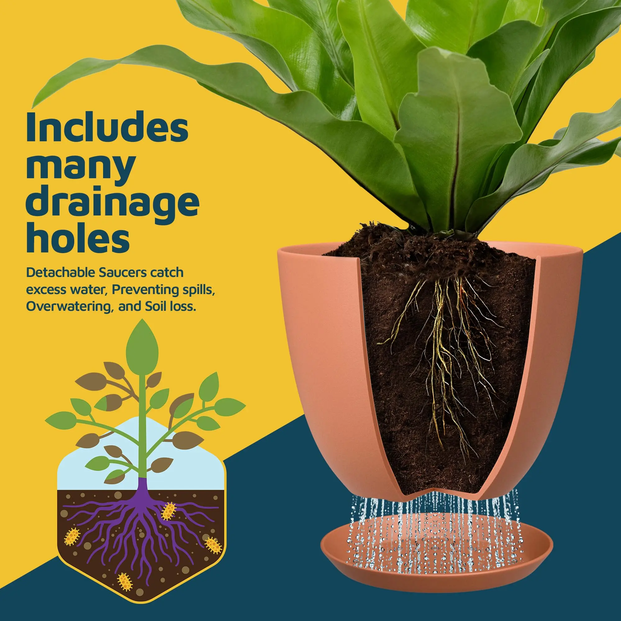 ·Smart Drainage System Prevents overwatering & promotes healthy roots.
