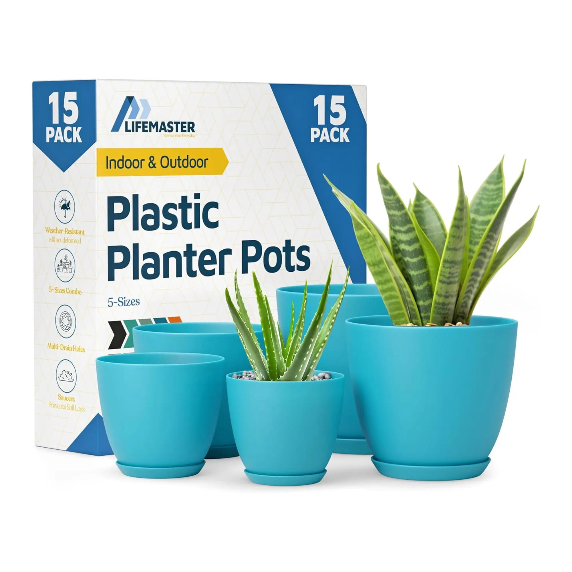 This 15-Pack Blue Plant Pots Set comes with multiple sizes, built-in drainage holes, and matching saucers—keeping your plants healthy and your space mess-free.