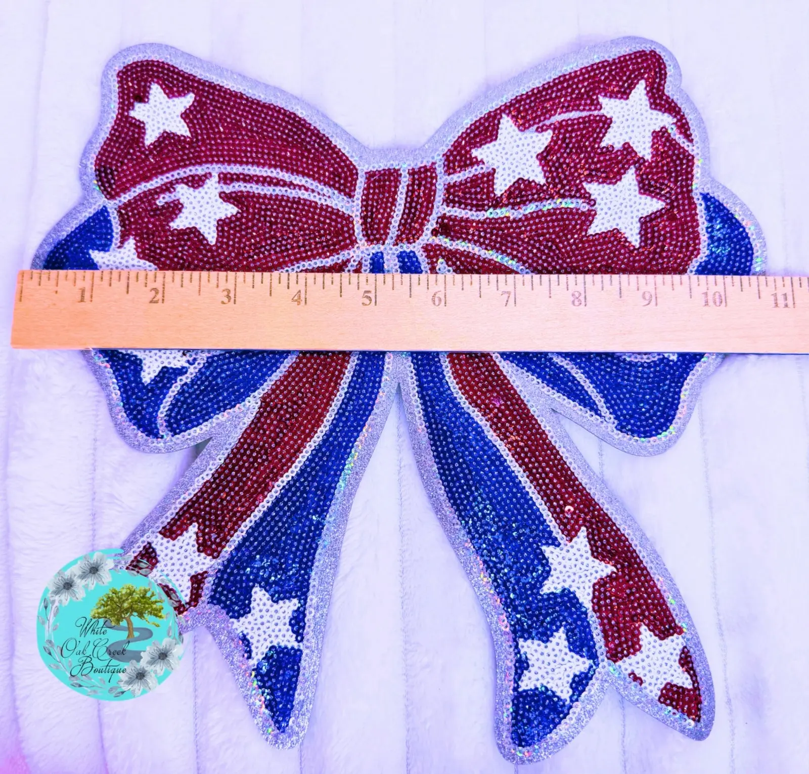 LARGE America Coquette Bow Sequin 10.5” Iron-On Patch