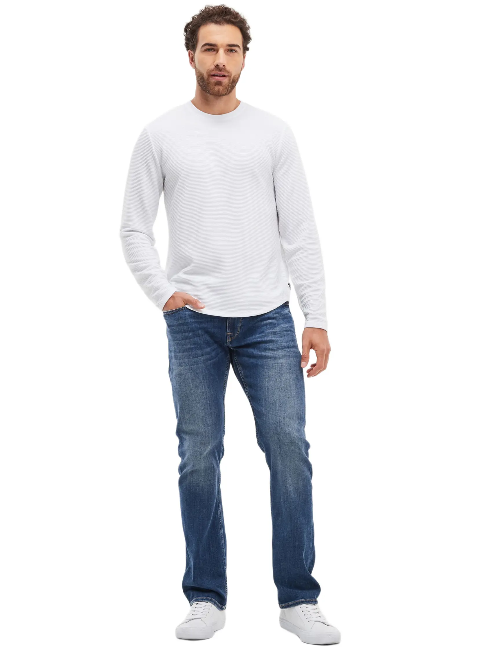 ·Five pocket construction. Zip fly.