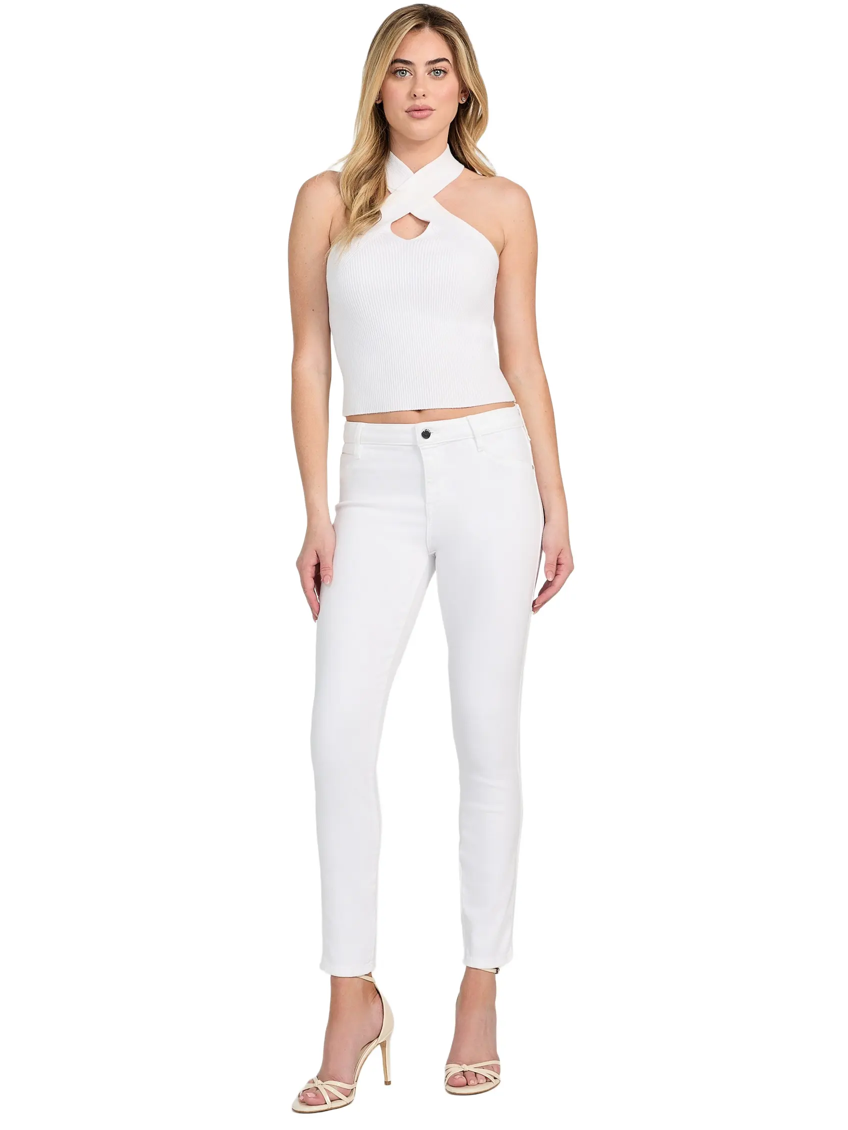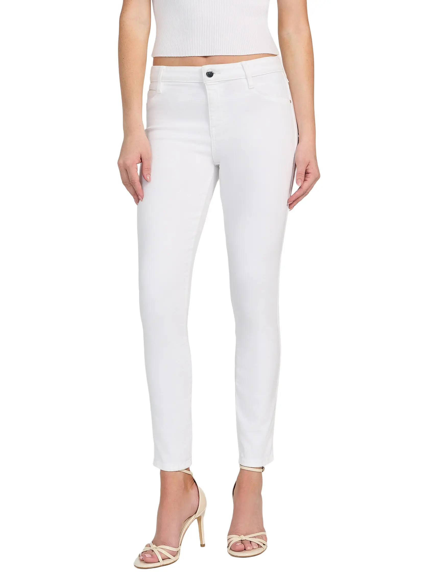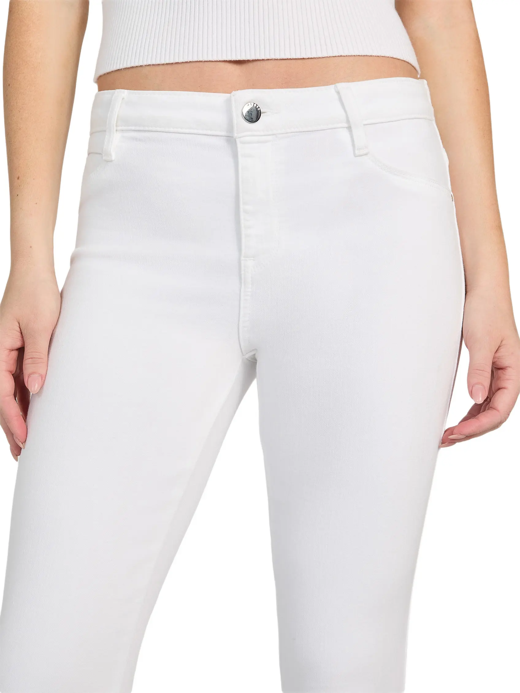 ·Medium rise, sits at waist. Skinny fit and leg.