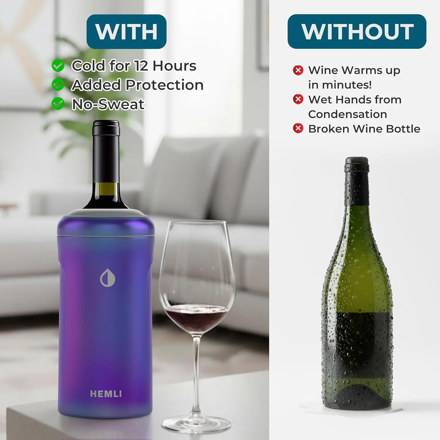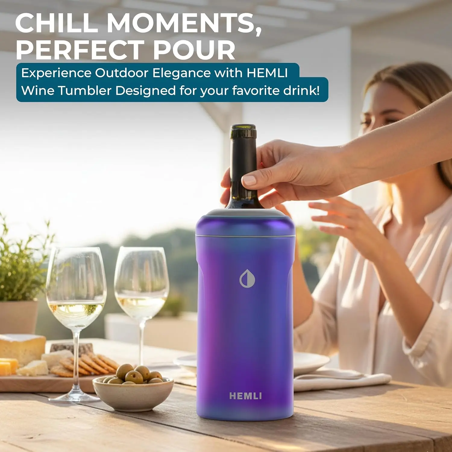 Introducing the ultimate wine accessory—the HEMLI Wine Chiller. Crafted for wine lovers who want to enjoy perfectly chilled wine anywhere, this premium wine chiller combines sleek style with high performance. The double-walled, vacuum-insulated stainless steel keeps your favorite white wine or champagne chilled for up to 12 hours, ensuring every sip is as refreshing as the first. With a versatile design that fits most standard 750ml wine and champagne bottles, it’s the ideal companion for outdoor picnics, beach days, backyard barbecues, or elegant dinner parties. Simply unscrew the top, insert your chilled bottle, and you’re ready to go. Built to last, the chiller features a lightweight ergonomic body, textured powder-coated finish for superior grip, and scratch resistance. Plus, every unit comes in a beautifully designed gift box—making it the perfect present for weddings, bridal showers, housewarmings, and more. Elevate your wine experience with the HEMLI Wine Chiller—where style meets performance for the ultimate pour, anytime, anywhere.