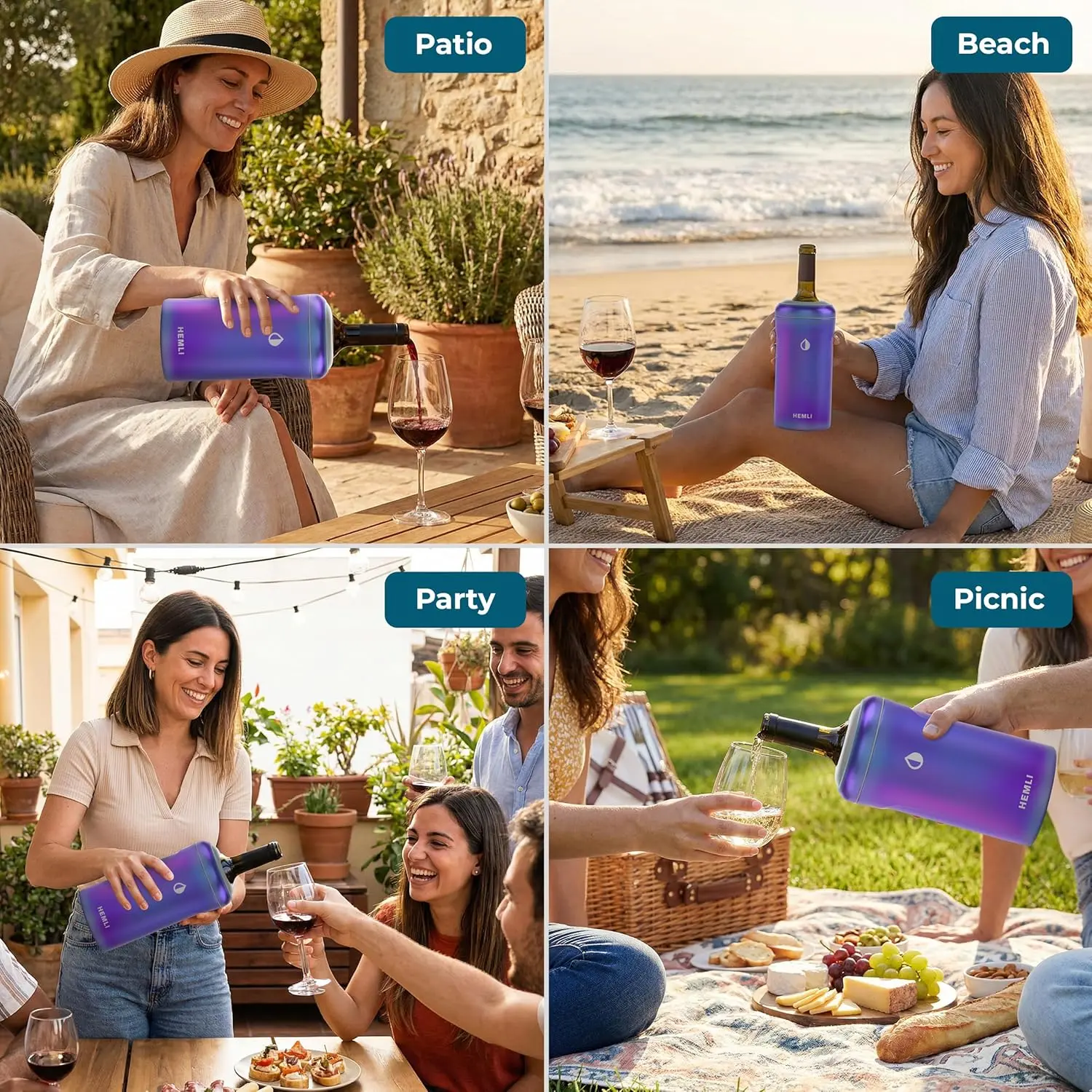 ·Fits Most 750ml Bottles: Designed to accommodate a wide range of 750ml wine and champagne bottles. Simply unscrew the top, insert your chilled bottle, and enjoy effortless, long-lasting temperature control.
