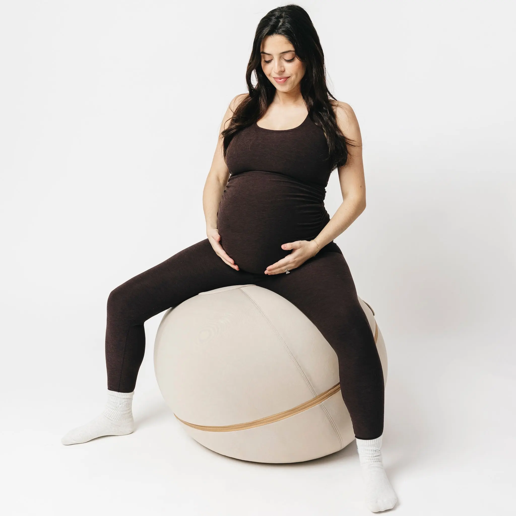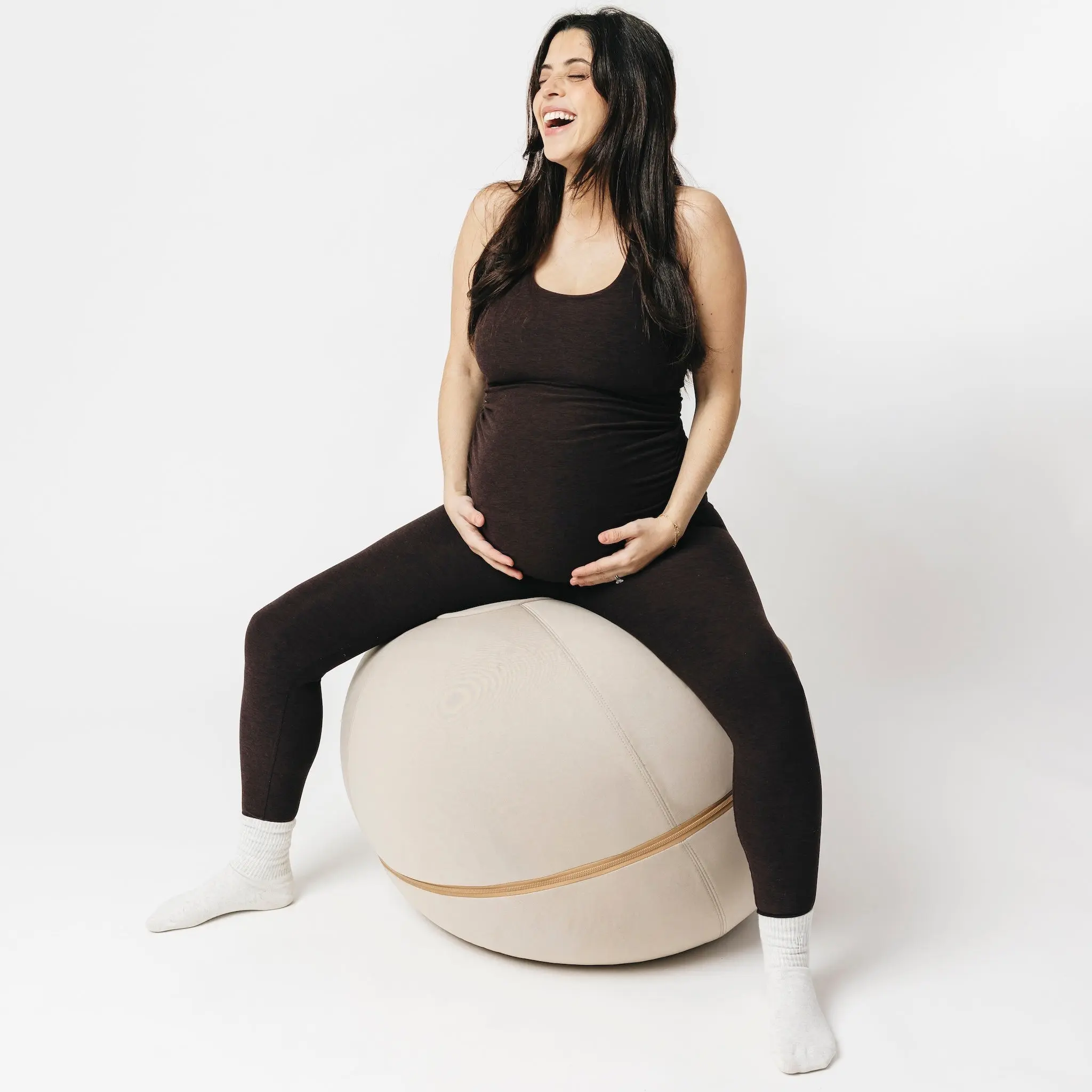 Its anti-roll design, created through a removable weighted base, keeps it securely in place—for storage, desk seating, or everyday use during pregnancy.