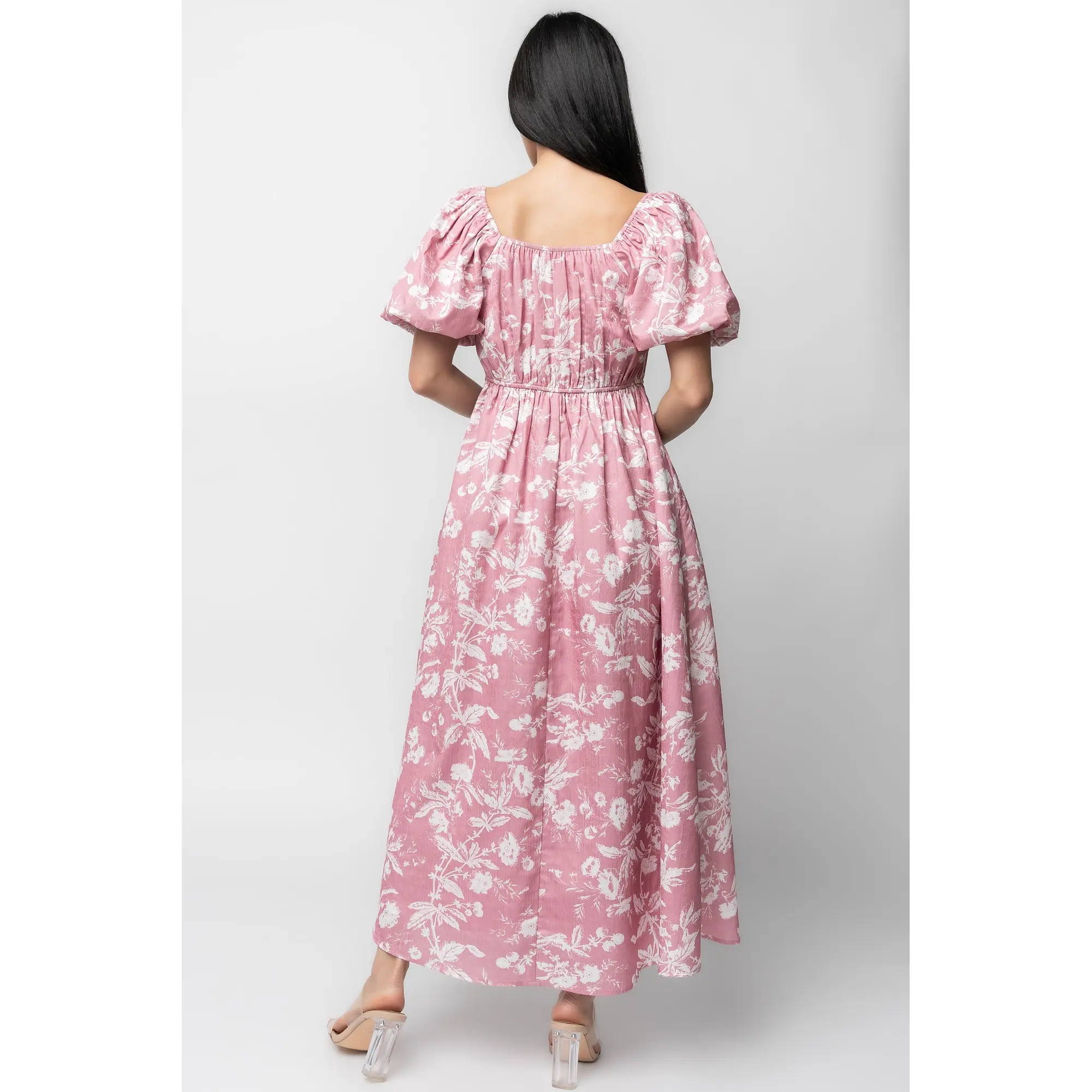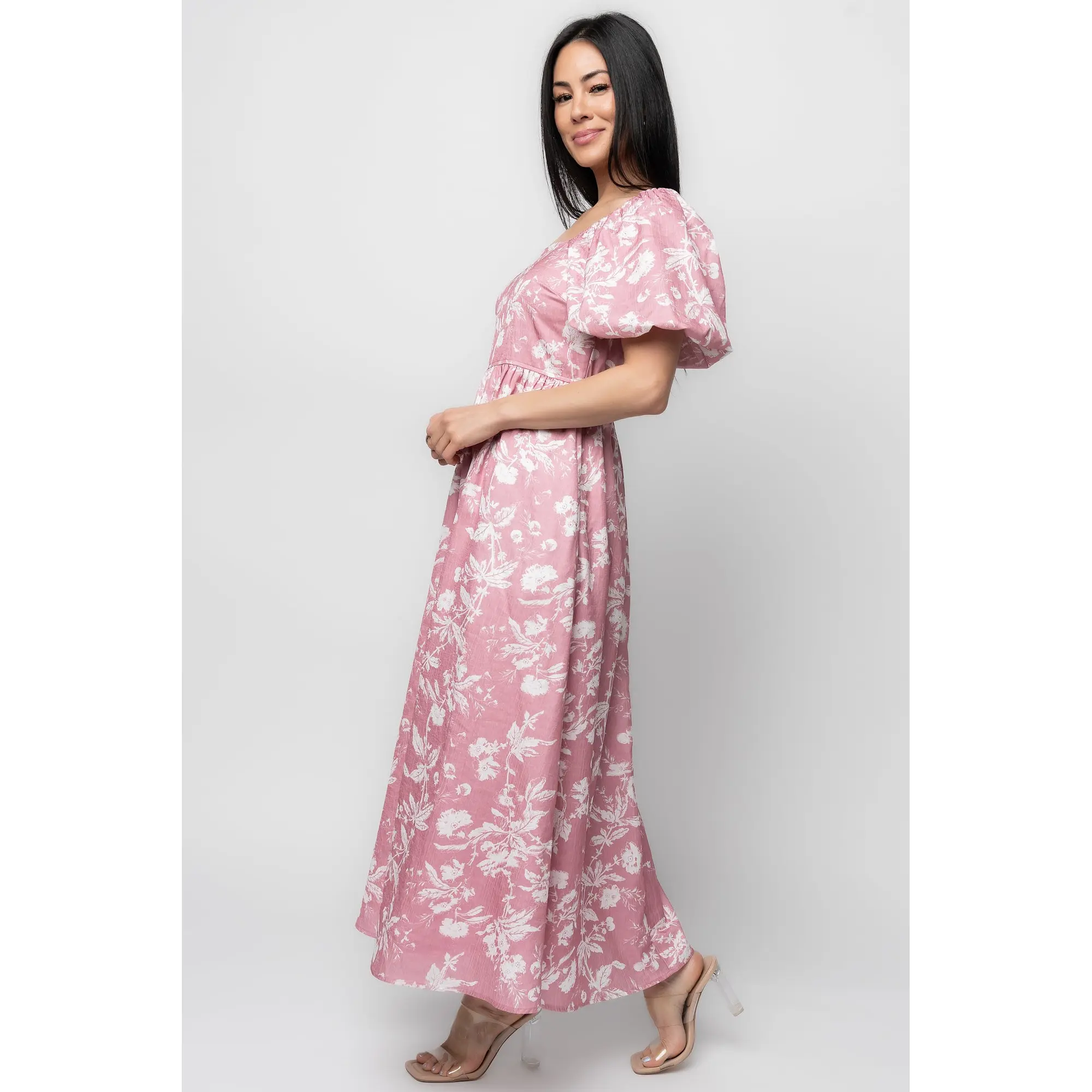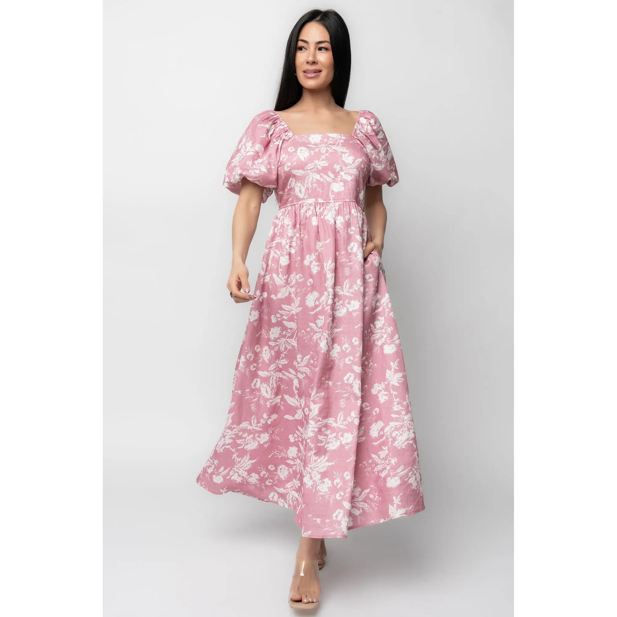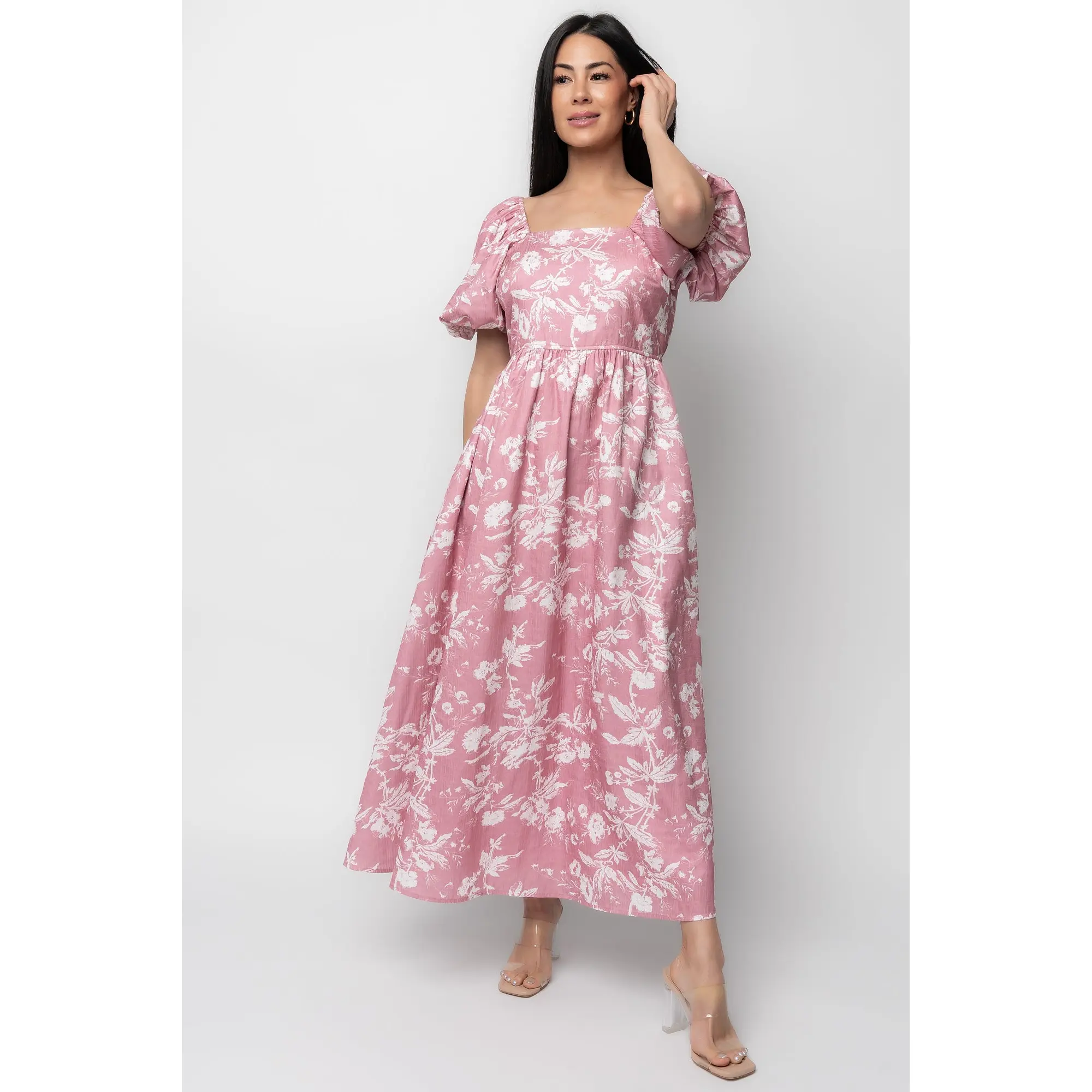 The Graceland Maxi Dress blends classic floral charm with modern comfort. An exclusive design, it features a square neckline and puffed balloon sleeves that frame the shoulders, while a high waist and full A-line skirt create a flattering silhouette for many occasions.