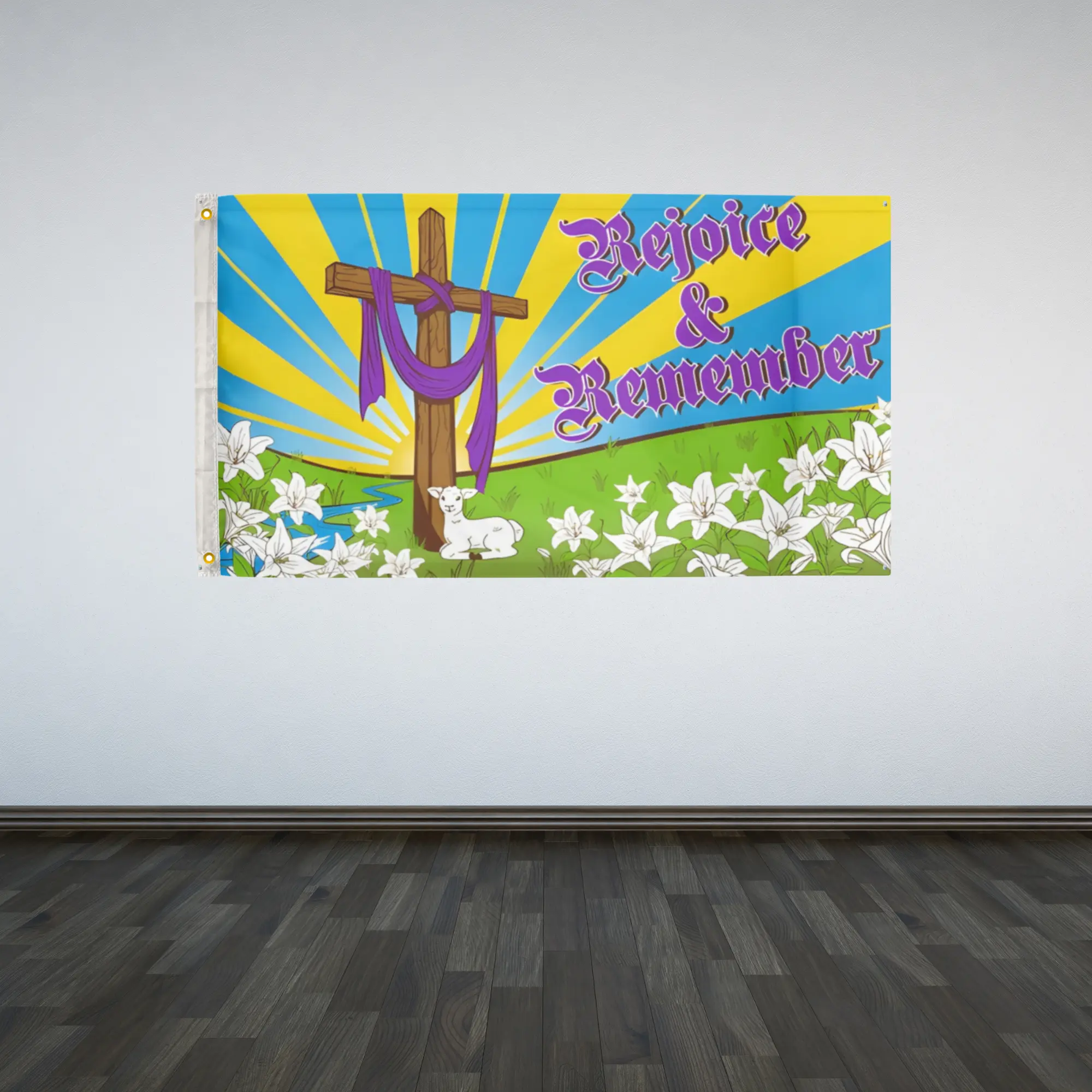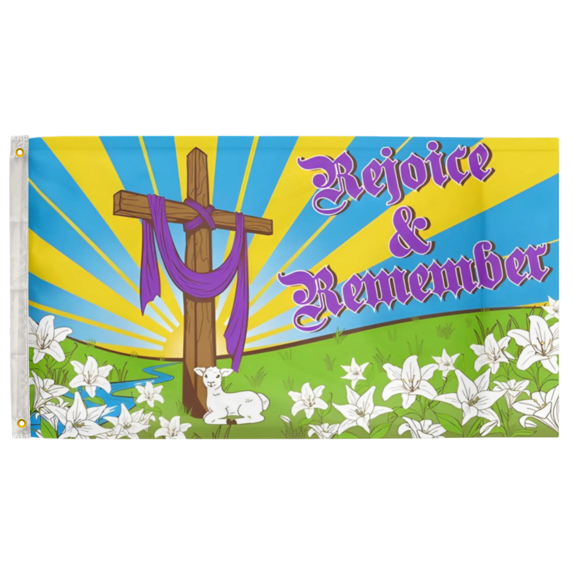 Rejoice & Remember 3'X5' Flag 100D Polyester (90cm x 150cm) Christian Flag (C25) RolFlags