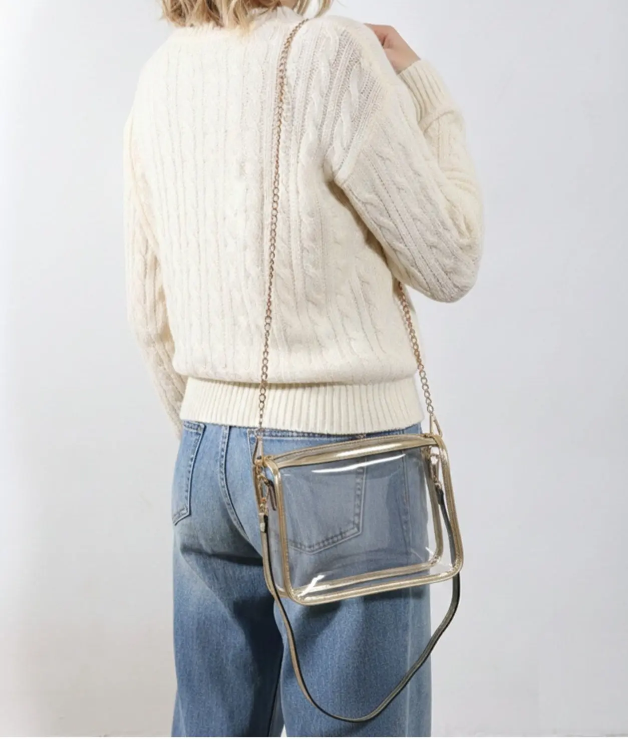 Elevate your game day look with this versatile clear stadium handbag, designed to meet venue requirements while keeping your essentials visible and accessible.
