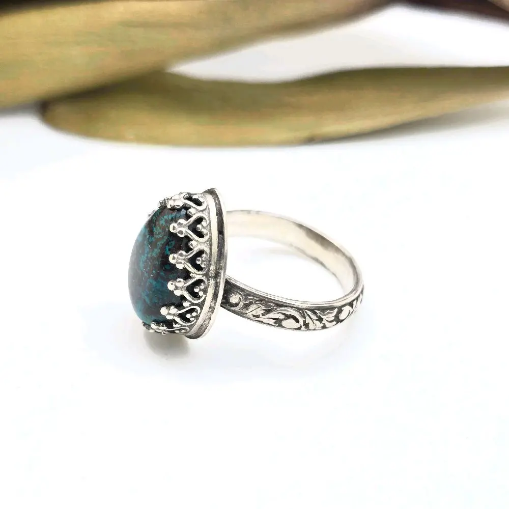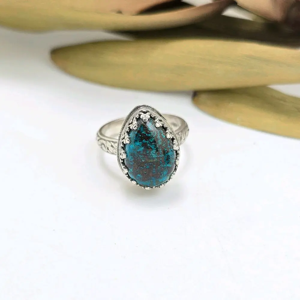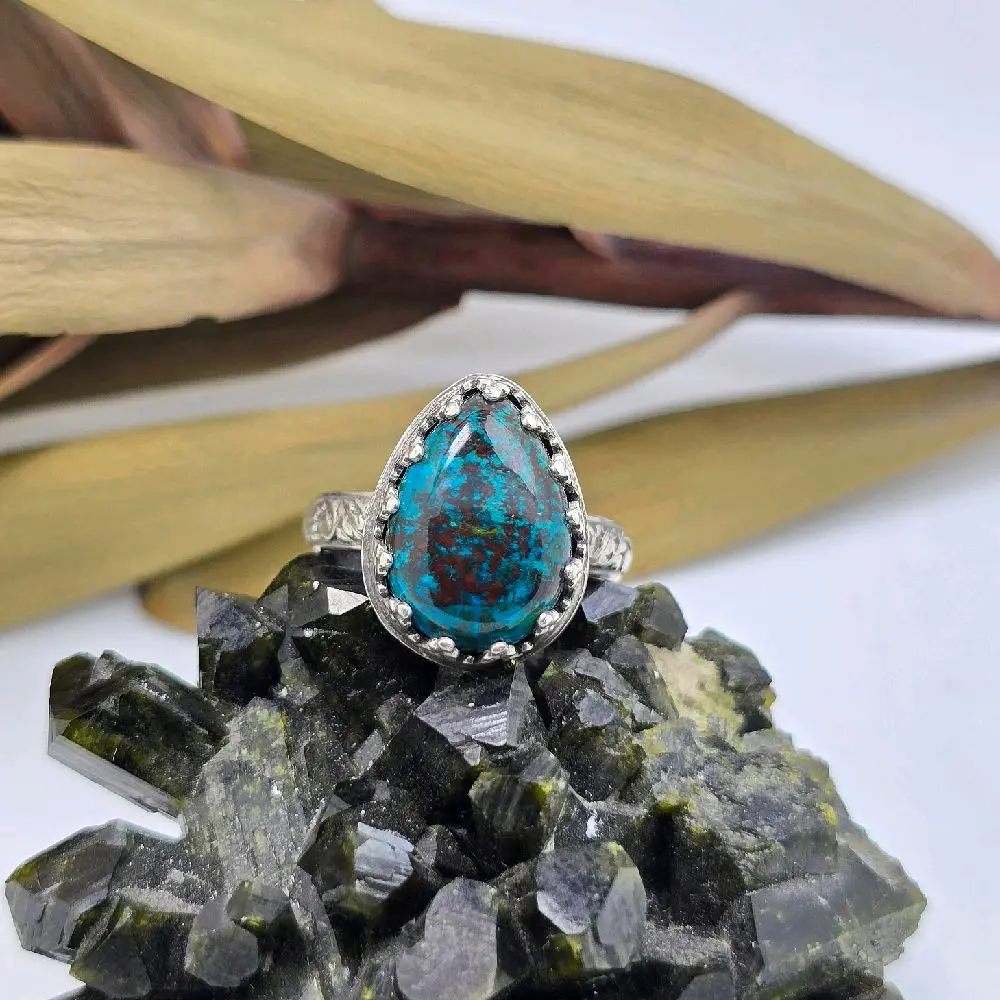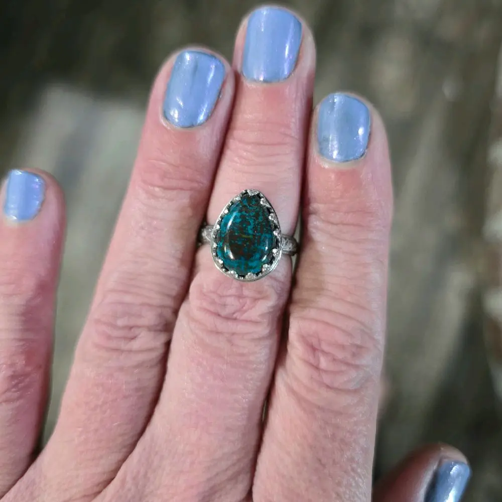 ·Teardrop cut turquoise Shattuckite is beautifully set in sterling silver.