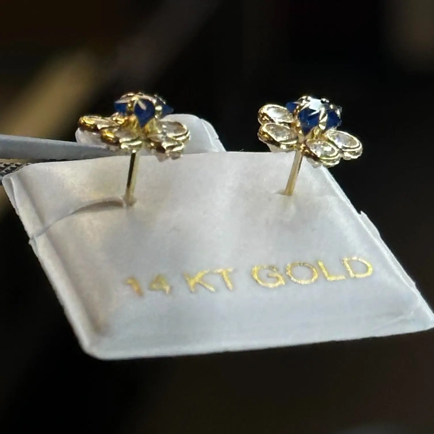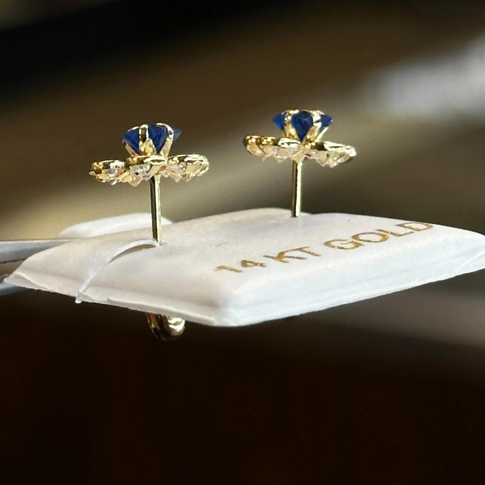 🌟 Pair these earrings with any ensemble for a chic look. The 14K gold and blue cubic zirconia combination makes them a timeless choice. Whether for a special event or everyday wear, these earrings are a must-have. Elevate your style with these exquisite flower earrings.