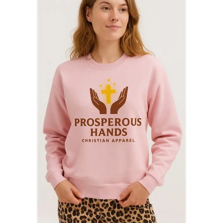 Soft, feminine, and faith-filled, the Prosperous Hands Pink Faith Sweatshirt is designed to reflect God’s love, grace, and strength. Featuring our signature hands-and-cross logo in warm brown and gold tones, this piece symbolizes surrender, prayer, and trusting God’s plan.