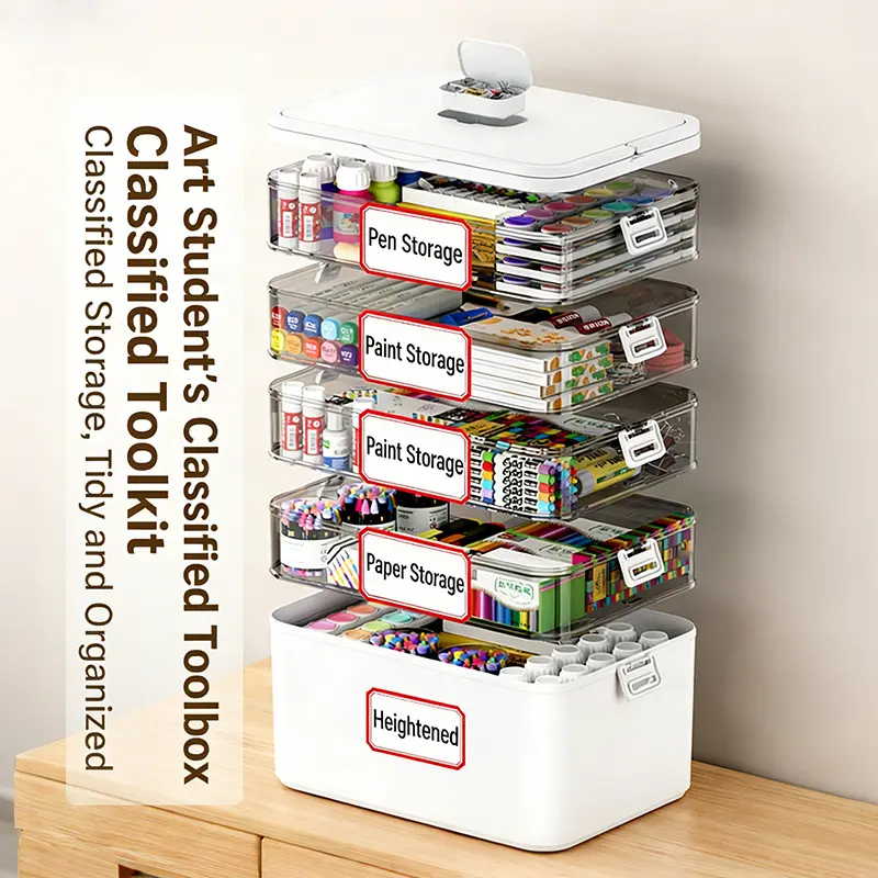 Integrated Multi-Layer Cantilever Design: Features internal tiered trays that fan out or stack neatly, allowing you to categorize small items like medicines, sewing needles, or office supplies while keeping the large bottom compartment free for bulkier tools.
