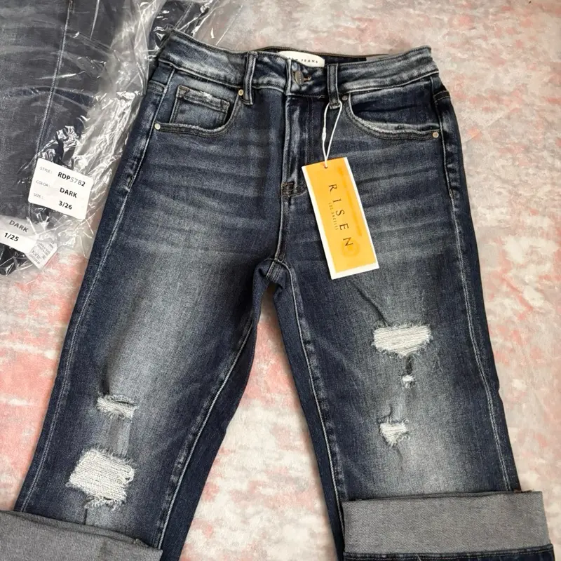 Risen Jeans - Dark Wash, Distressed Design, Regular Fit,Size, Comfortable & Style