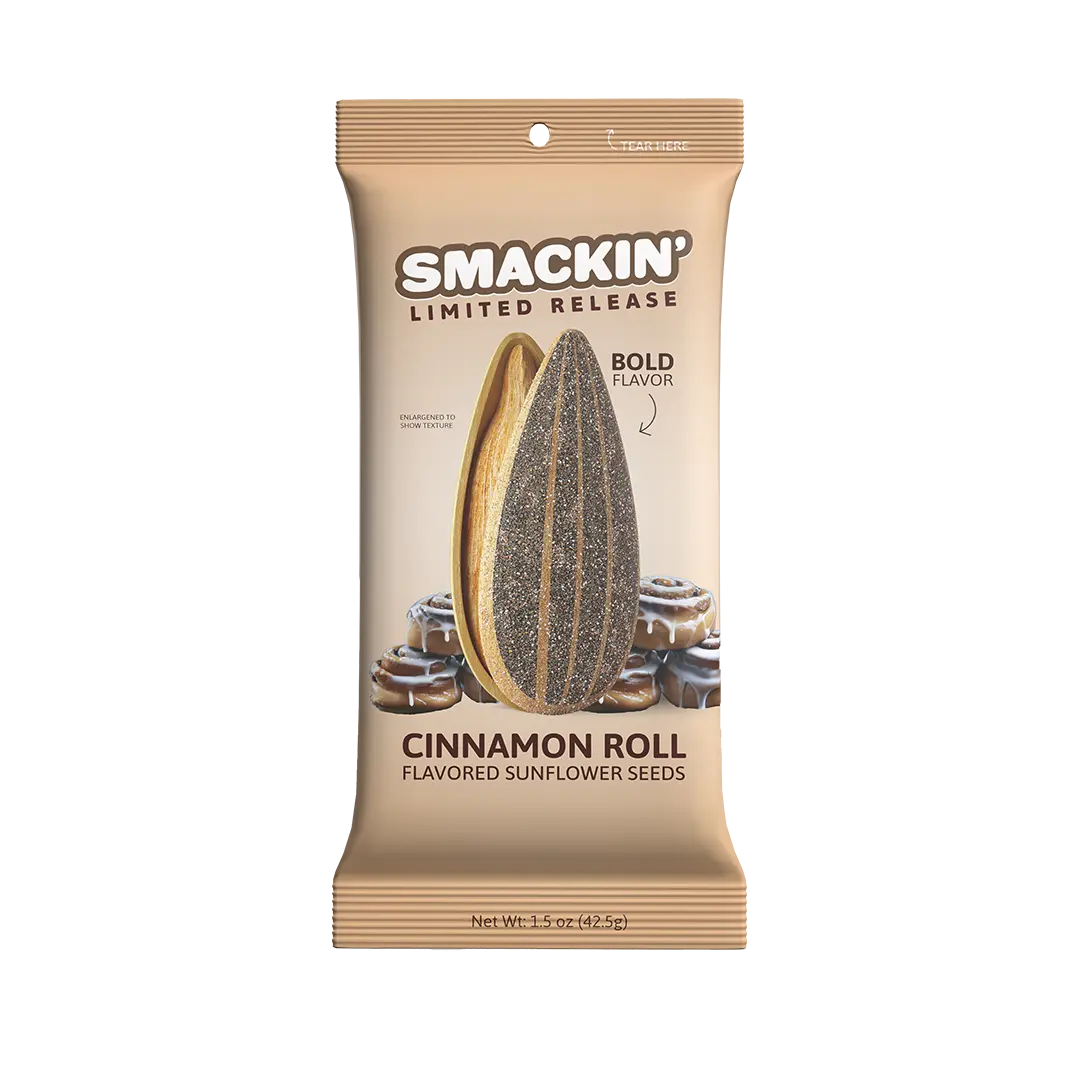 LIVE EXCLUSIVE - SMACKIN' Sunflower Seeds - CINNAMON ROLL - 6 Single Serve 1.5 OZ Bags