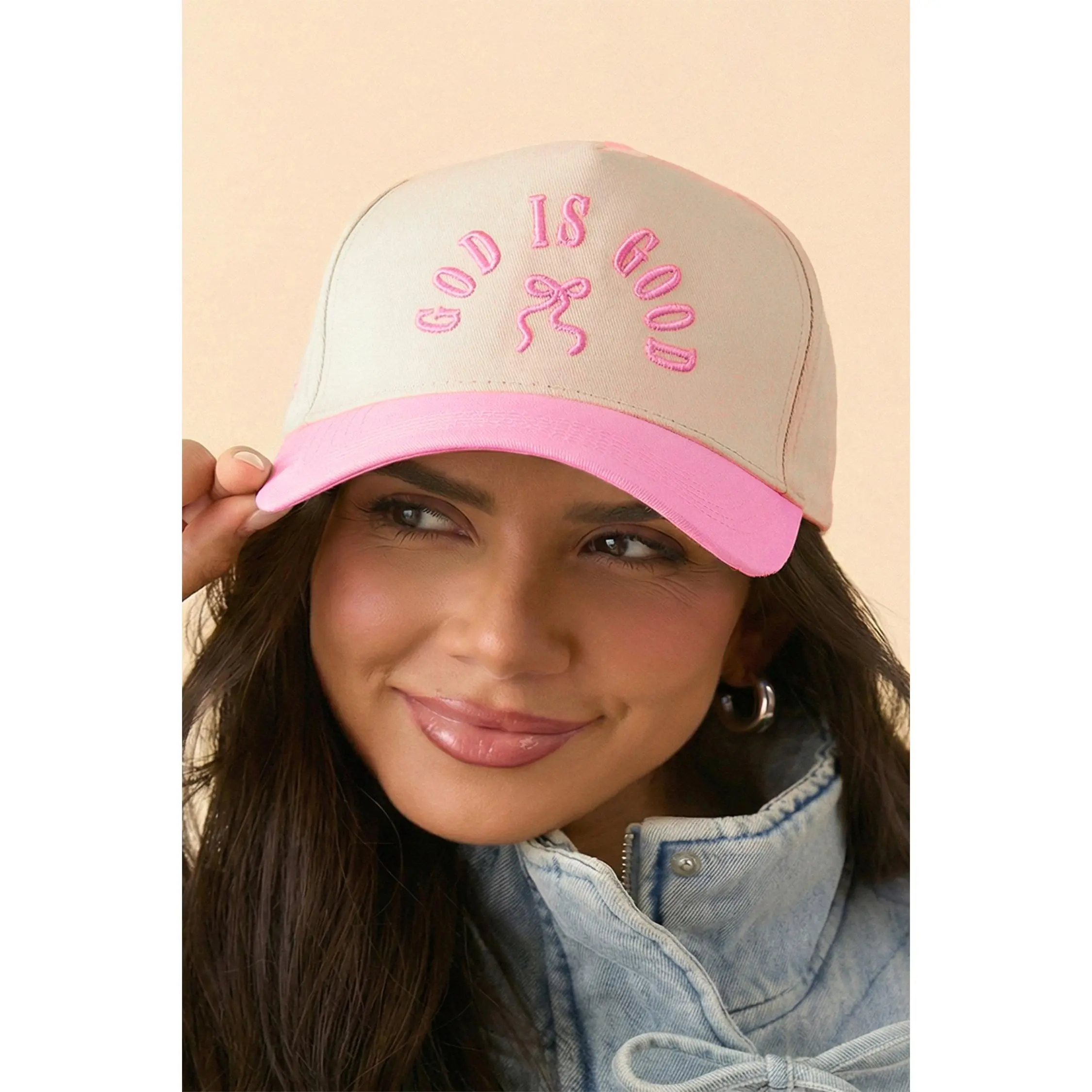 Pink GOD IS GOOD Embroidered Bow Color Block Baseball Cap
