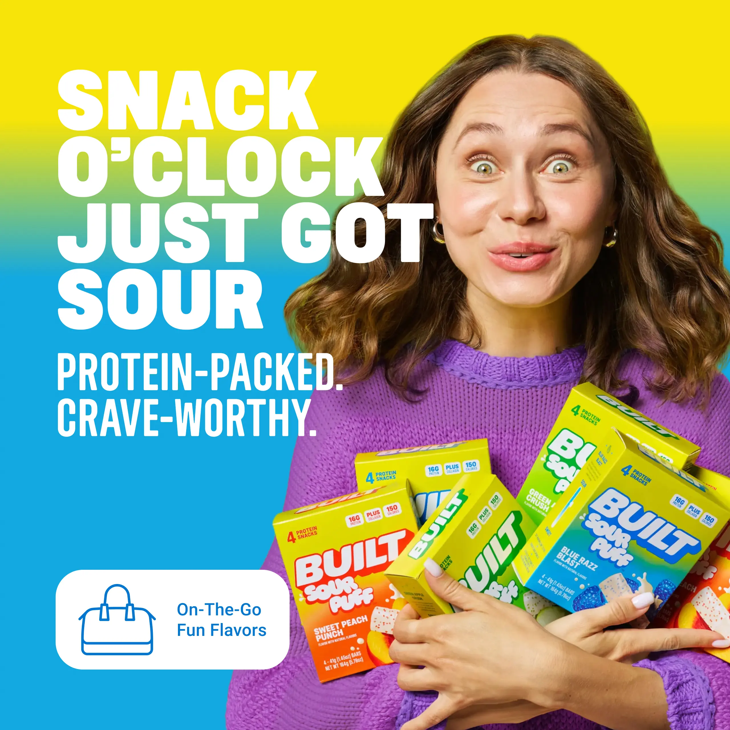 ·SMOOTH TASTE: BUILT Sour Puff protein packed snacks are designed to have a smooth taste without a chalky aftertaste